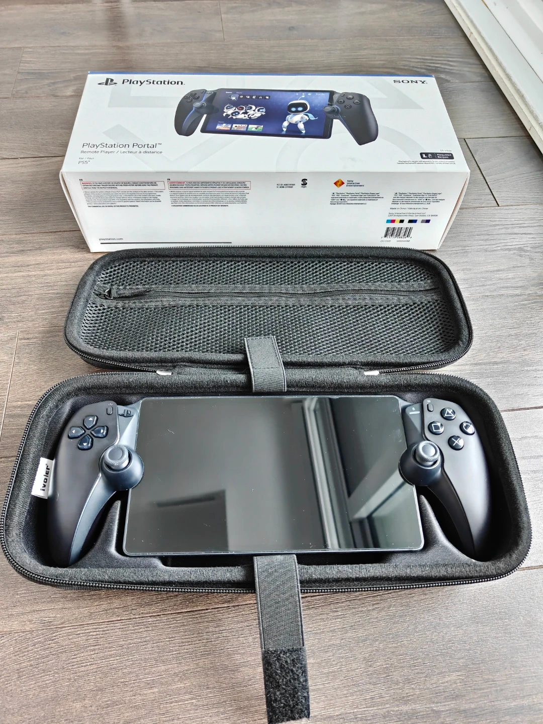 This is a Sony PlayStation Portal remote player - Midnight Black edition. It comes with a protective carrying case and screen protector (already applied). Enjoy streaming your PS5 games to a handheld device.