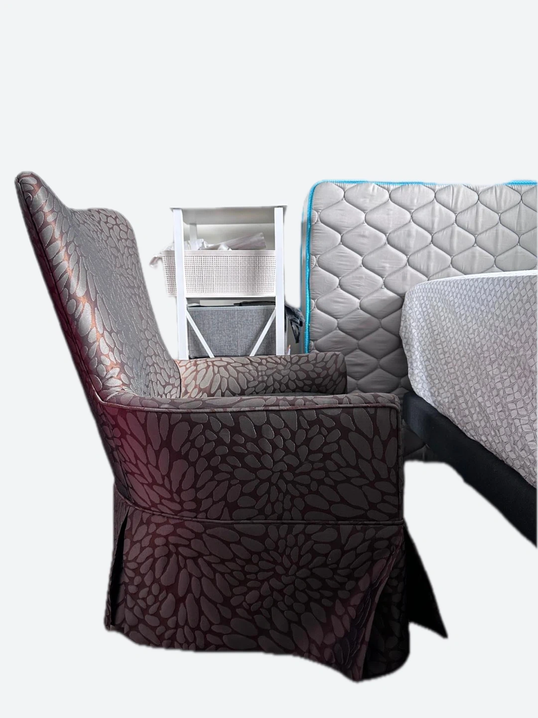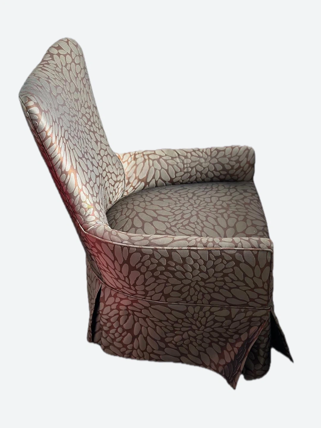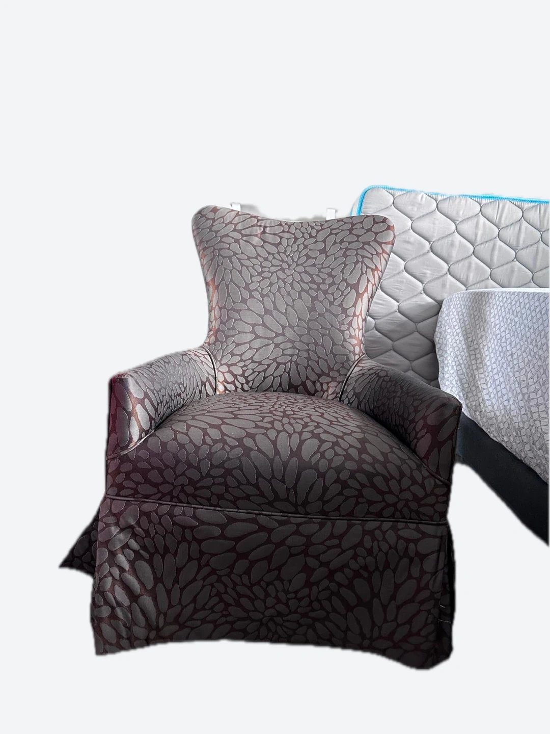 This is a stylish wingback armchair with a unique pattern. It would look great in any living room or child’s bedroom. The chair is in good condition and is ready for a new home