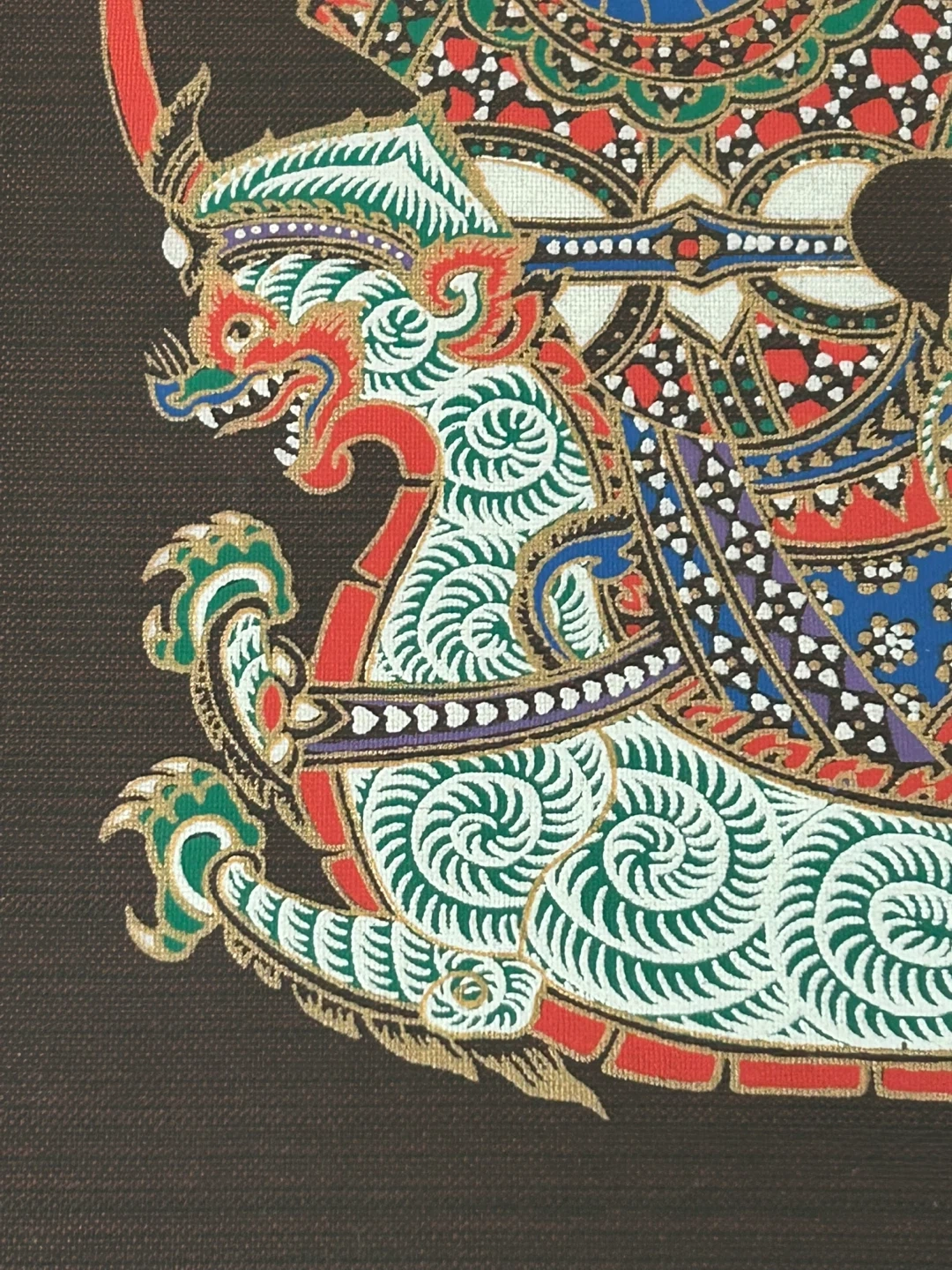 A striking wall piece ideal for collectors of Southeast Asian art, Thai cultural decor, mythological artwork, or statement vintage textiles.