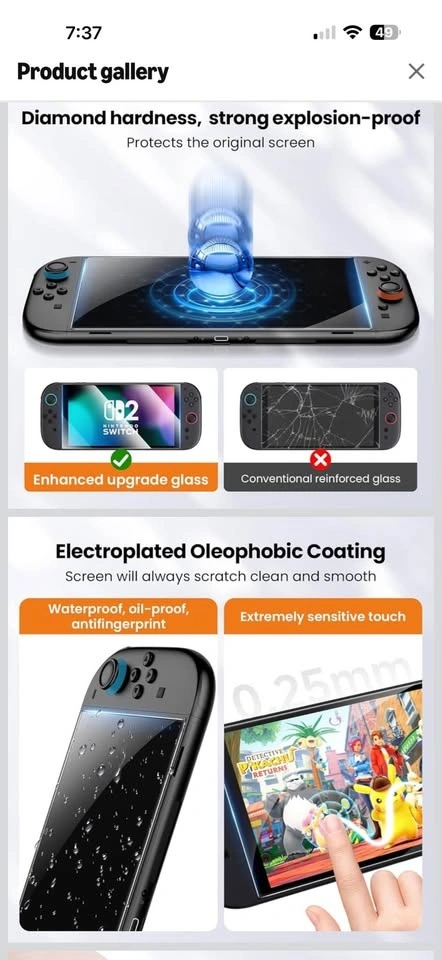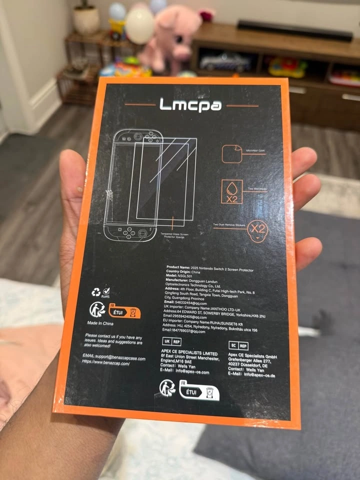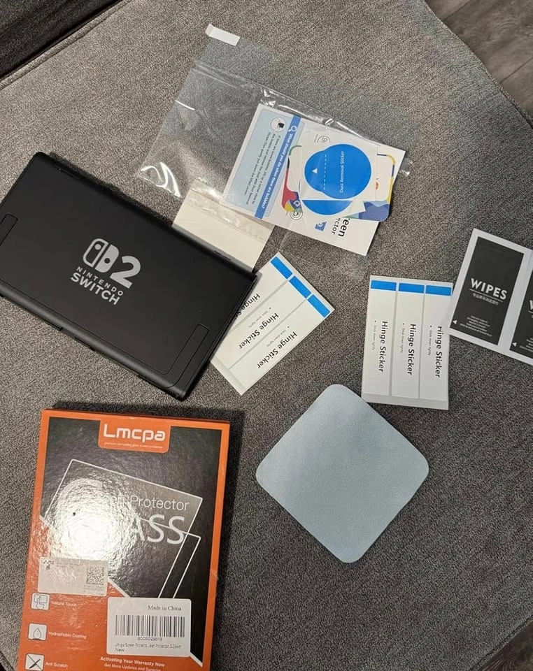 Brand Lmcpa. Tempered glass material with 9H hardness. Specifically designed for the Nintendo Switch 2nd Generation (2025 model). Features ultra-clear, high-definition 99.9% transparency and is ultra-thin at 0.25mm for full touchscreen sensitivity. Highly durable and scratch-resistant with an oleophobic coating to reduce fingerprints. Includes 2 screen protectors, dry & wet wipes, and an installation guide.
