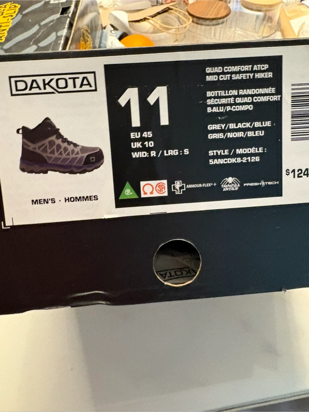 60Selling a pair of Dakota Quad Comfort ATCP Mid Cut Safety Hikers in size 11! They are grey, black, and blue. The style number is 5ANCDK8-2126. These are men's shoes.