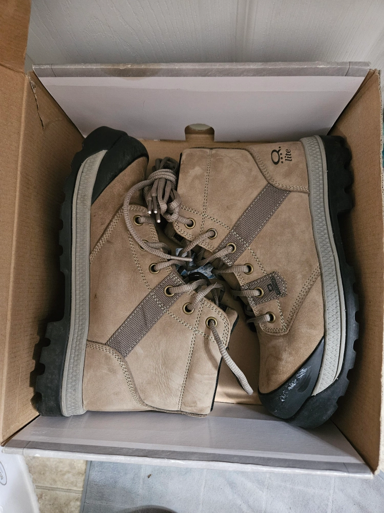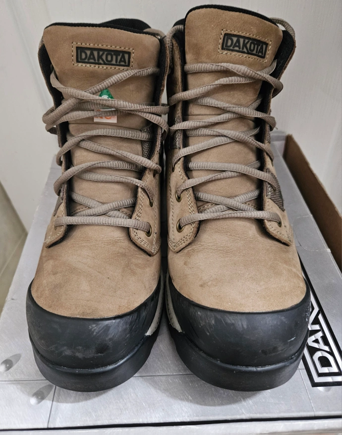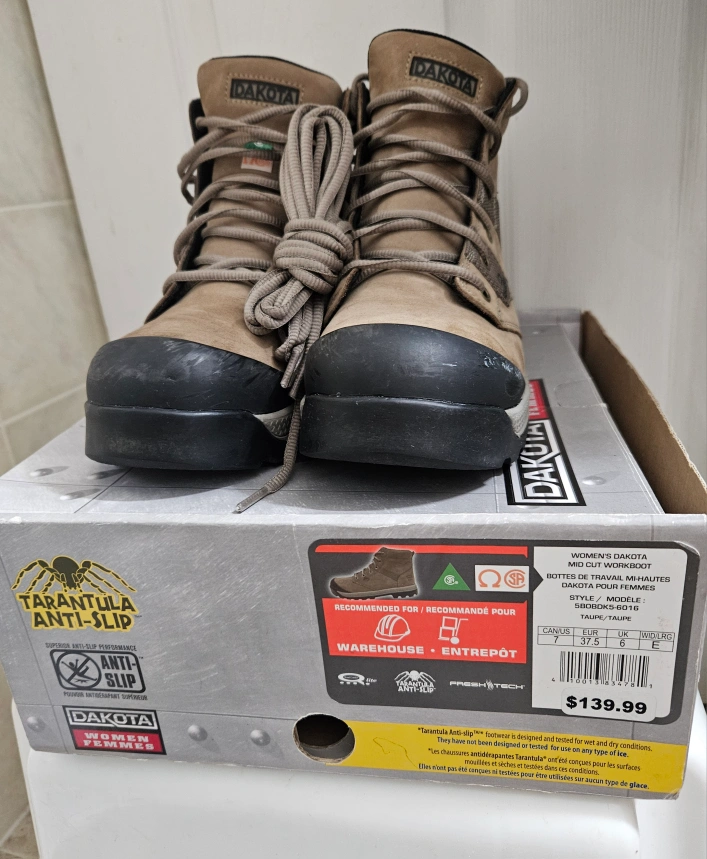 Selling a pair of Dakota Women's Mid Cut Workboots in size 7. The style is WORKBOOT W6 in taupe/taupe. These boots are designed and tested for wet and dry conditions. The box is included! Only worn a couple times.