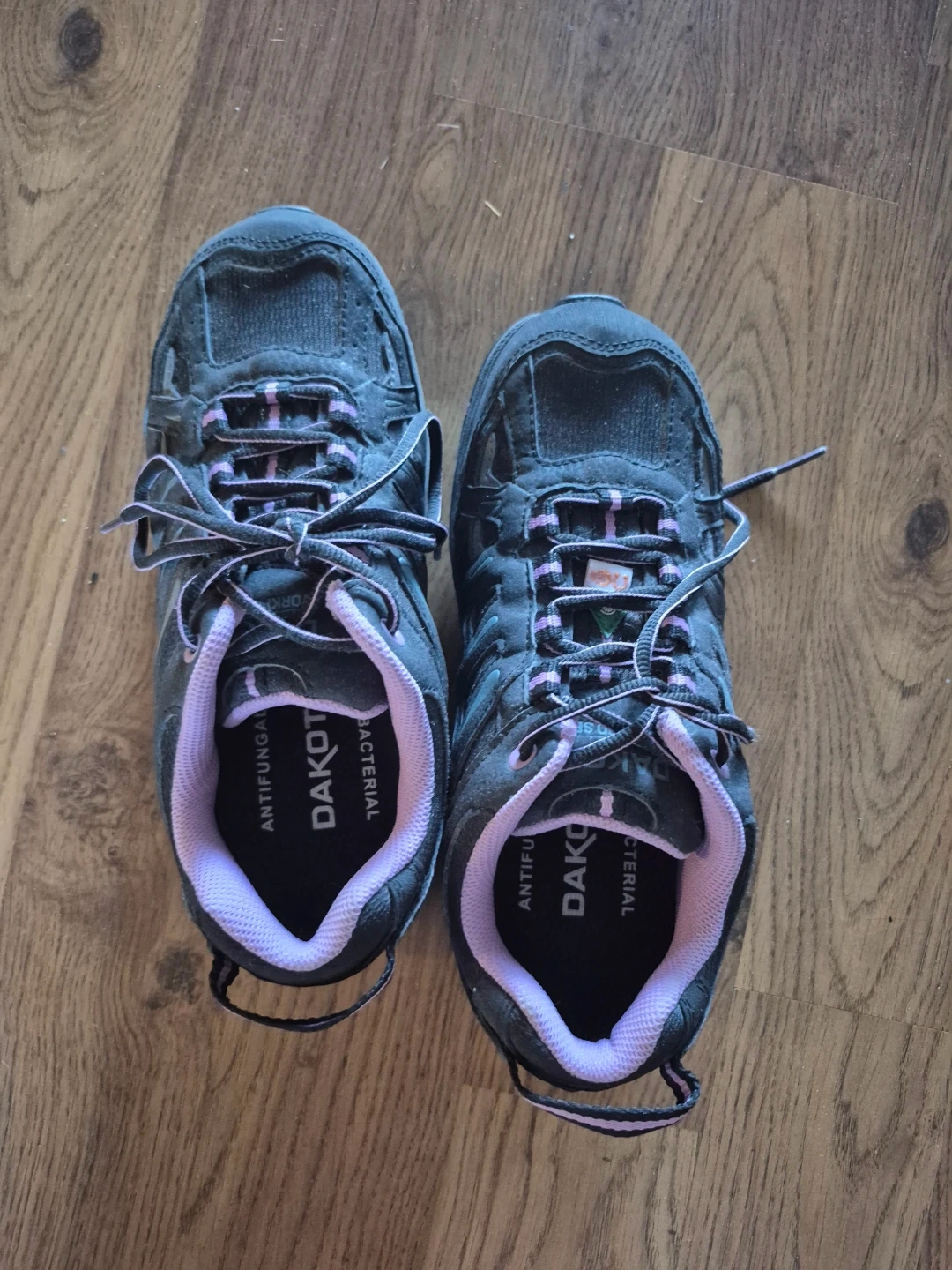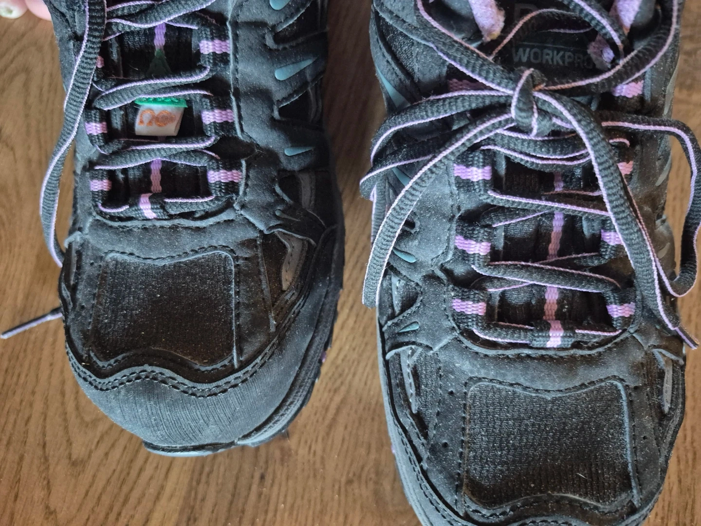 10Selling a pair of Dakota Workpro Series hiking shoes for women. Steel toed. Anti fungal, anti bacterial. They're a stylish black with purple accents. Great for hitting the trails and non slip and great for work. Never used brand new. Paid $150 asking $130