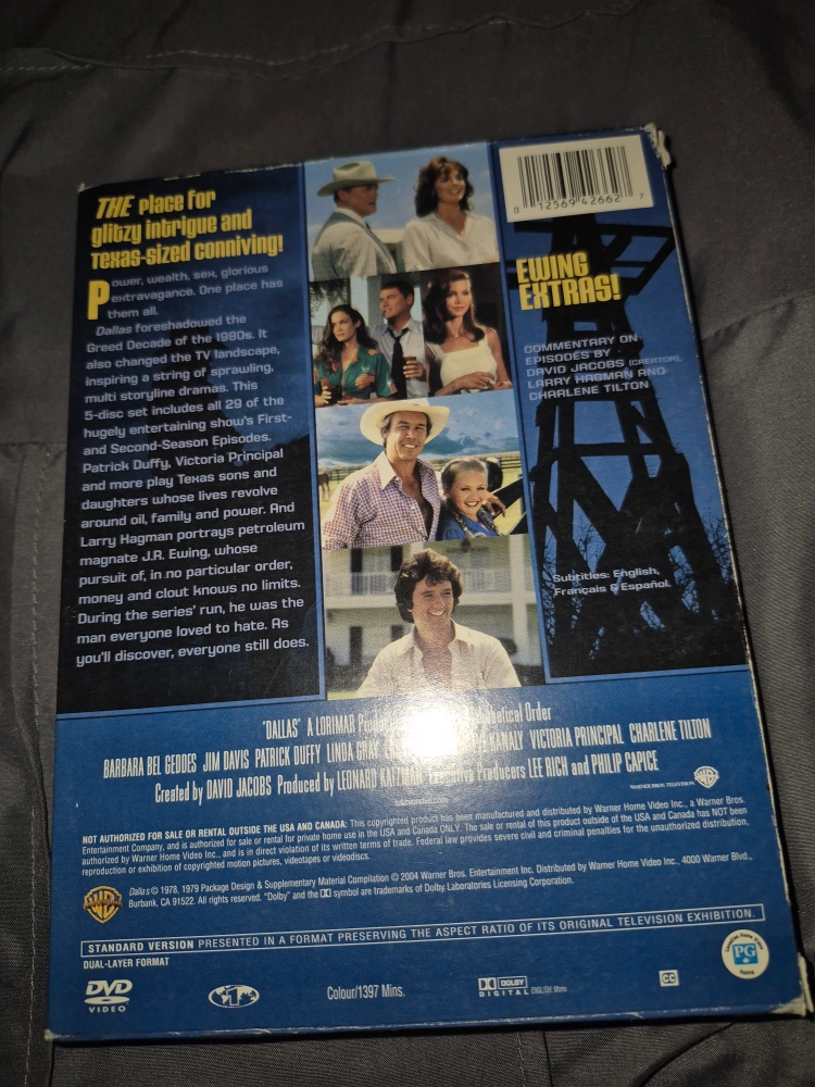 Selling the DVD set of Dallas: The Complete First and Second Seasons. This set includes all the drama and intrigue from the early years of the iconic TV show. Perfect for fans of classic television!