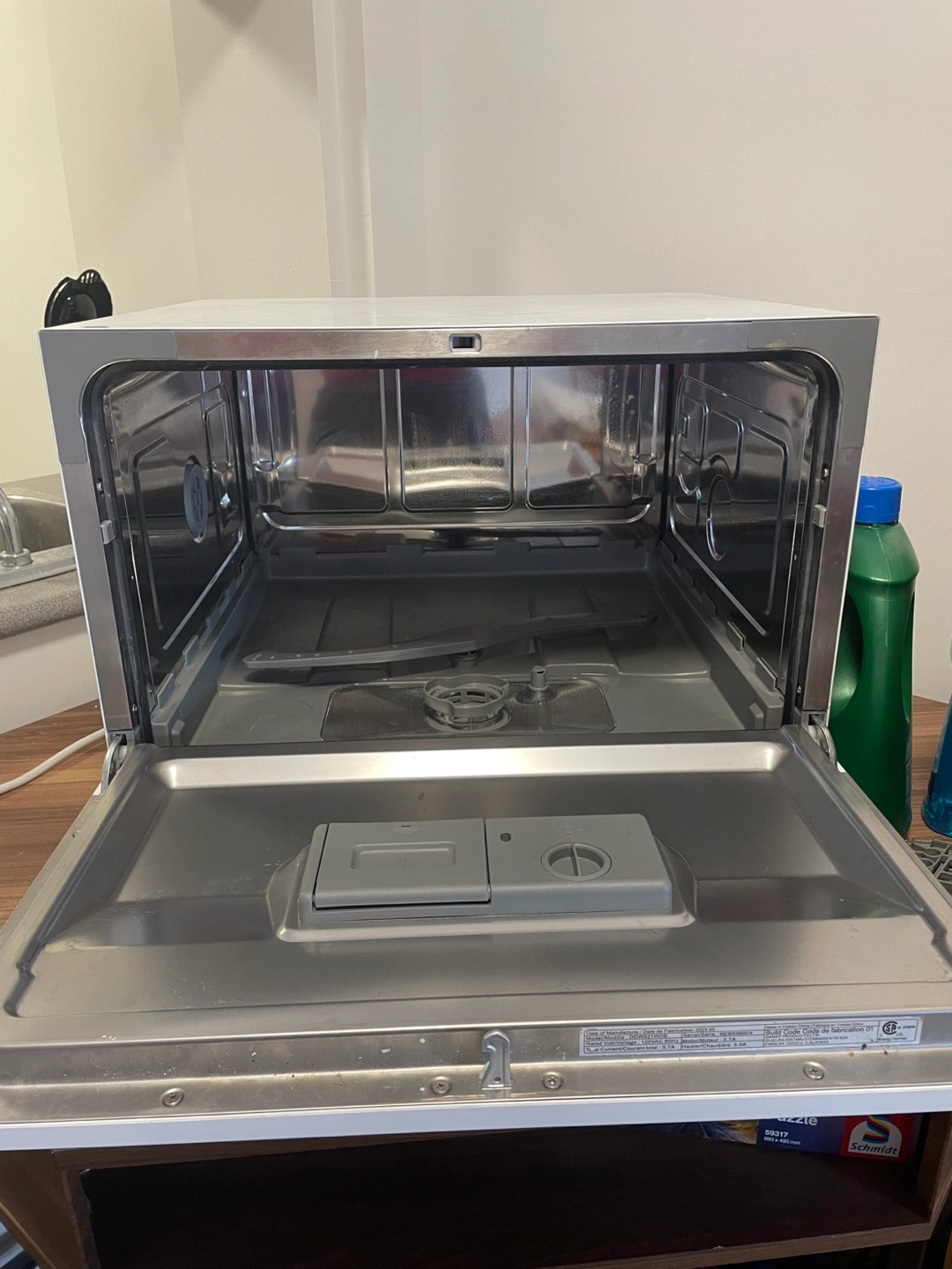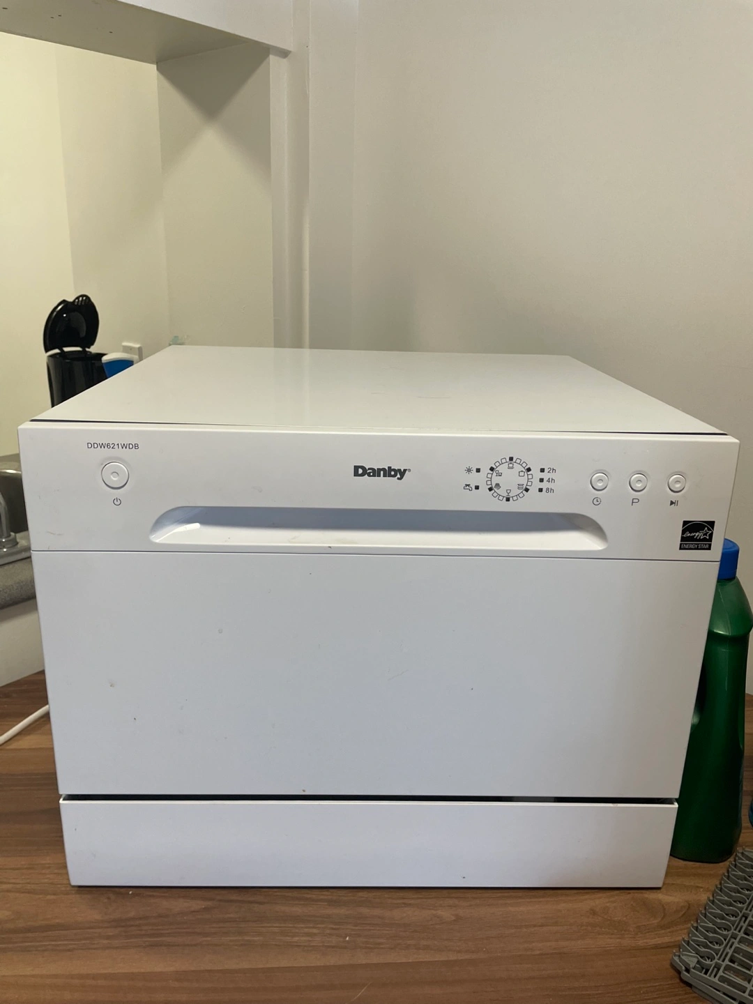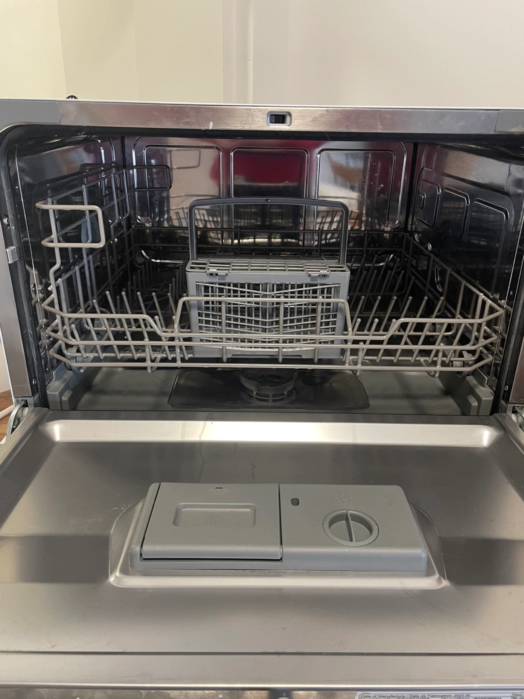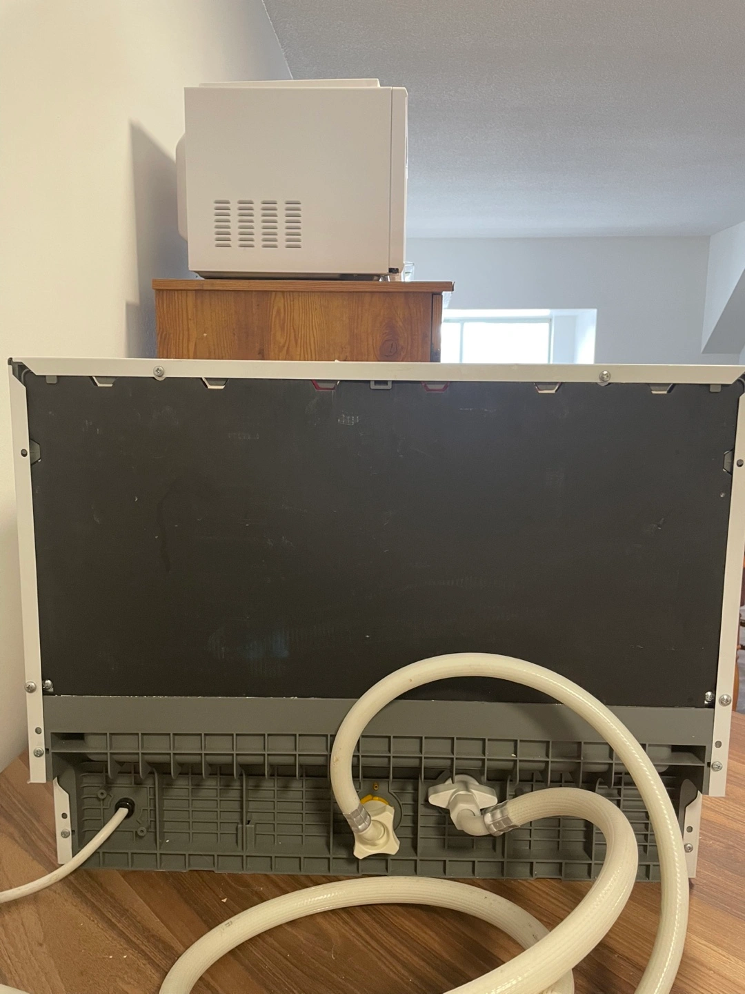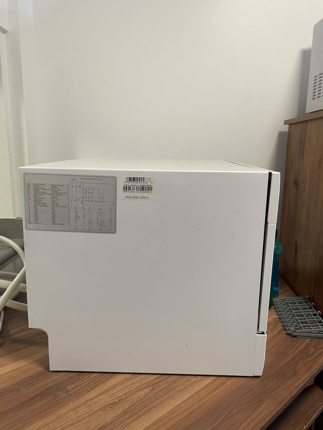 60Compact countertop dishwasher. White finish. Includes hoses and power cord. Model number DDW621WDB. Multiple wash cycles. Good used condition.