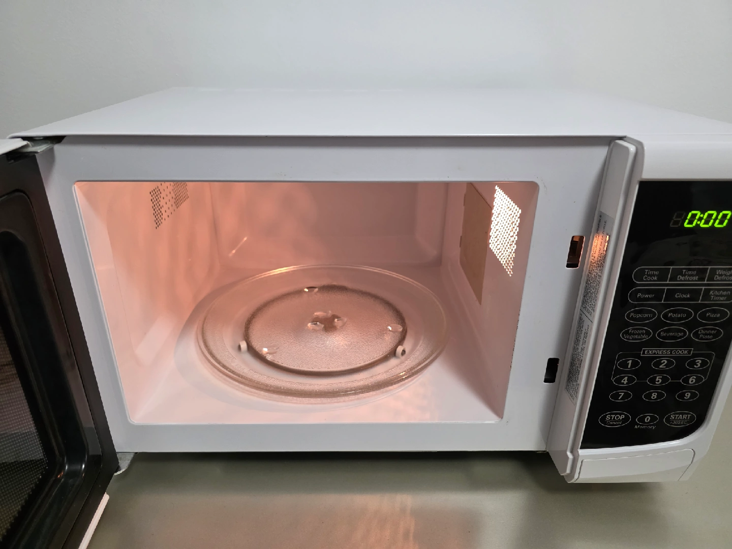 Selling a Danby microwave in white. It's in great condition and ready to use! Perfect for small kitchens or offices. The interior is clean and the turntable is included