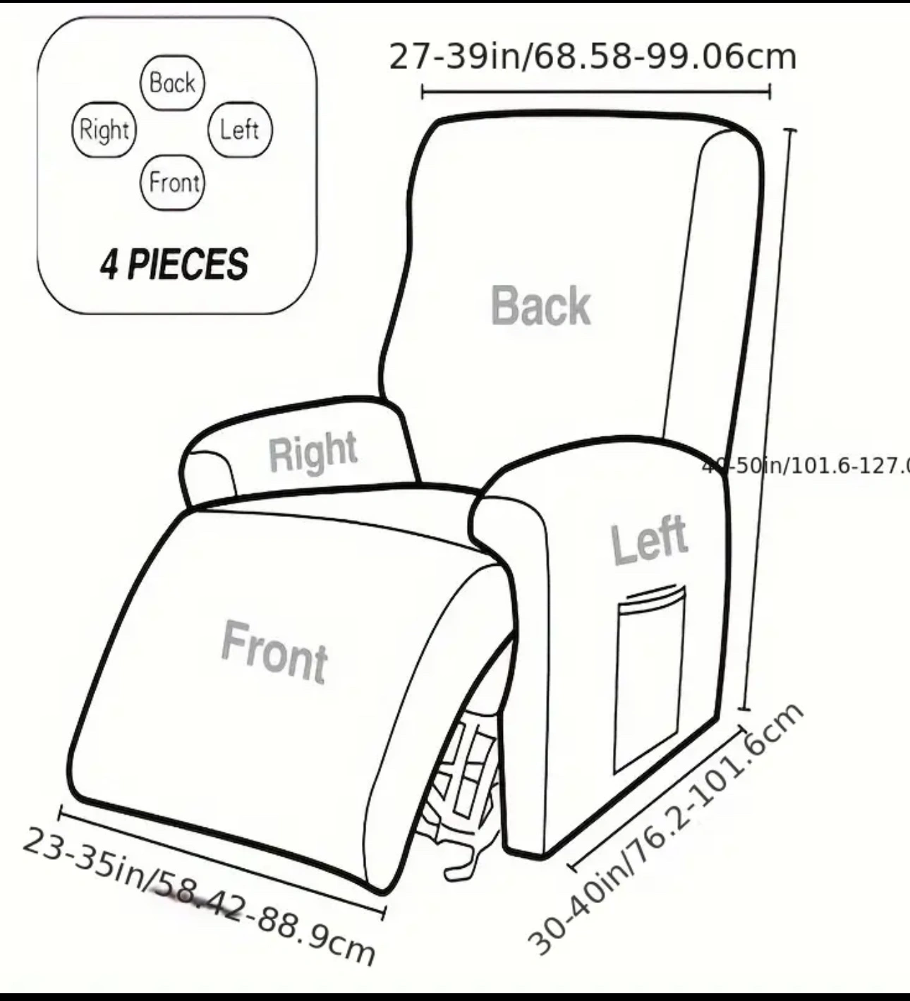 Dandelion Recliner Slip Cover. 4 Piece Set.