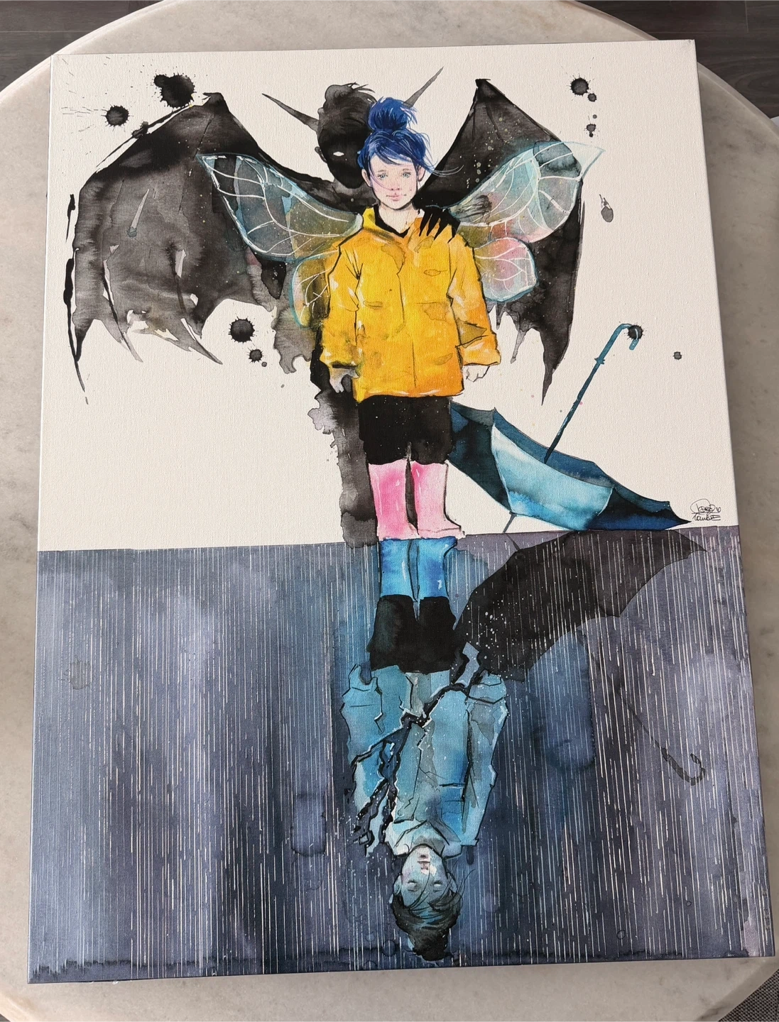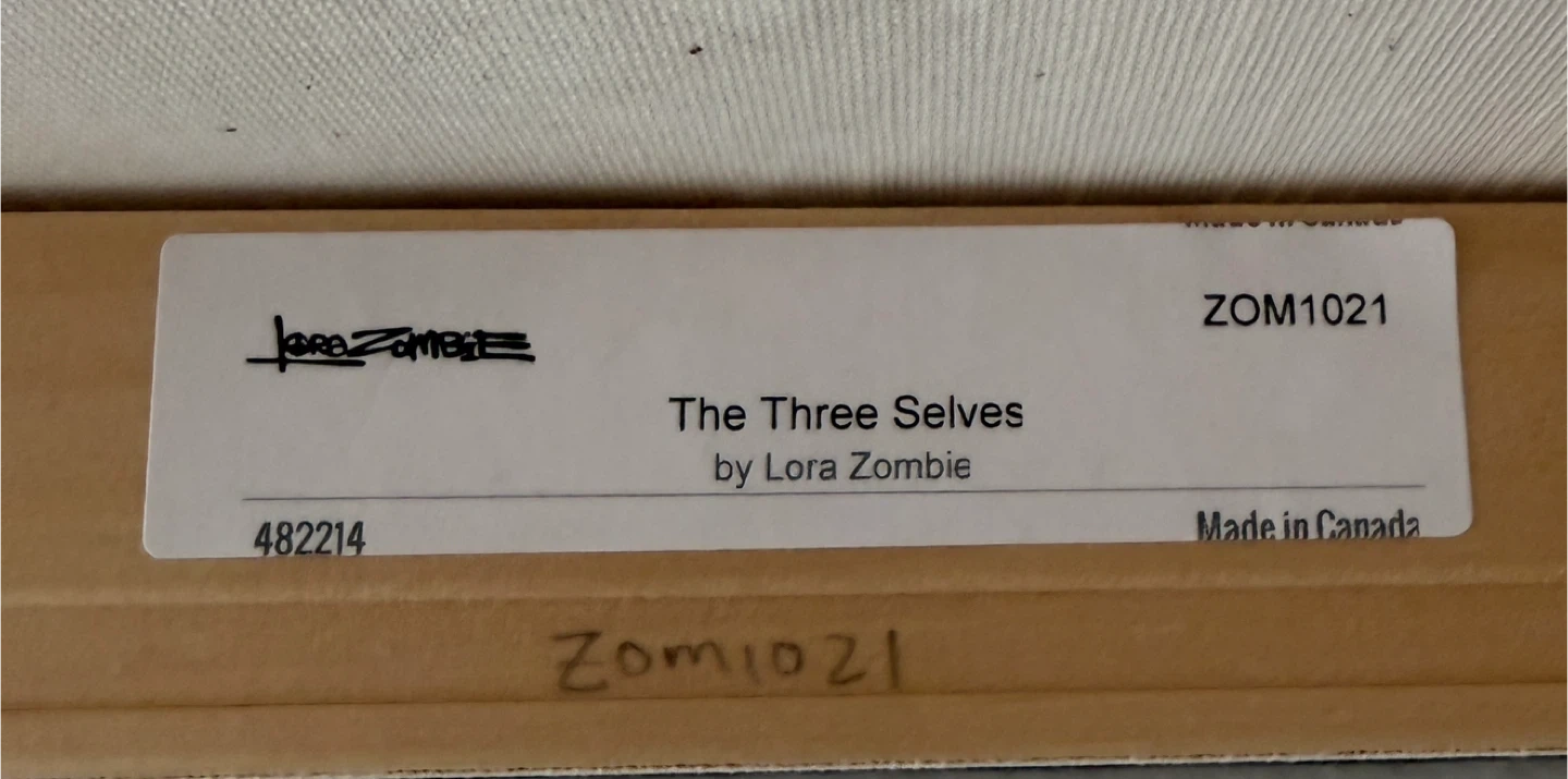 This "The Three Selves" canvas print features artwork by Lora Zombie. It's printed on canvas and framed on wood. Made in Canada.