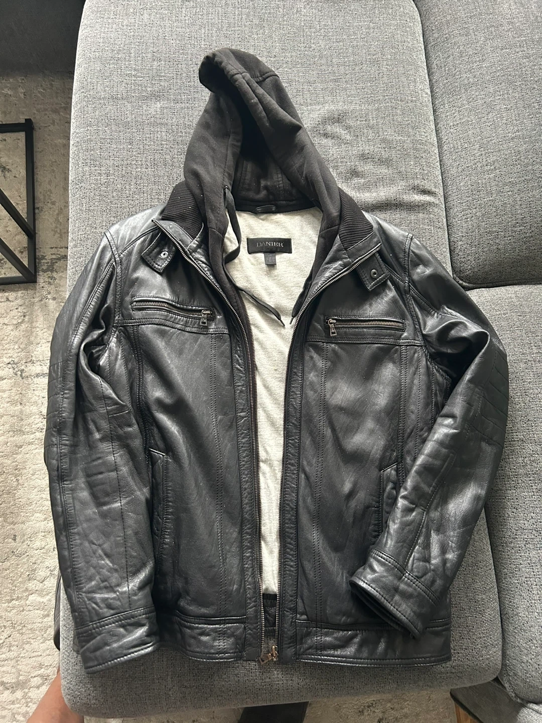 Selling a Daniel brand leather jacket in black. It comes with a hood. It's in great condition and ready for U