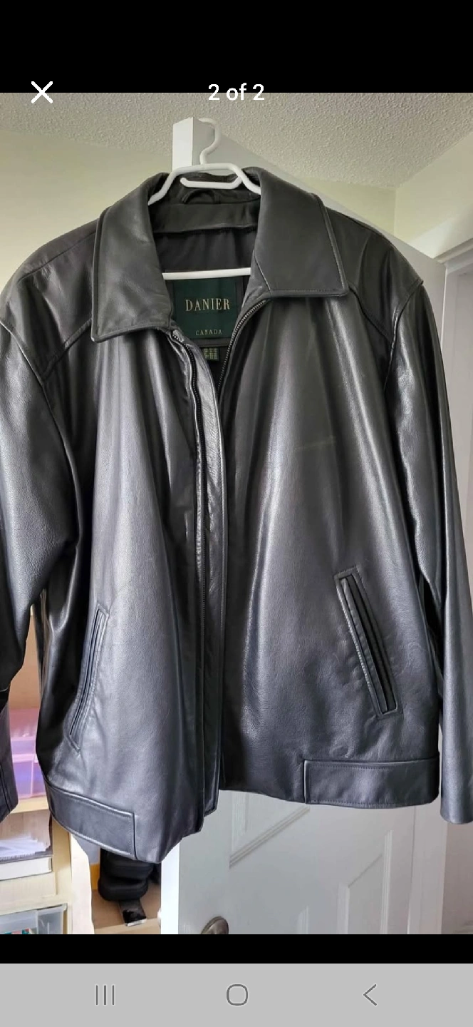 Here's a classic black leather jacket from Danier! It's a size 42/44. The jacket is in great condition and ready for a new home