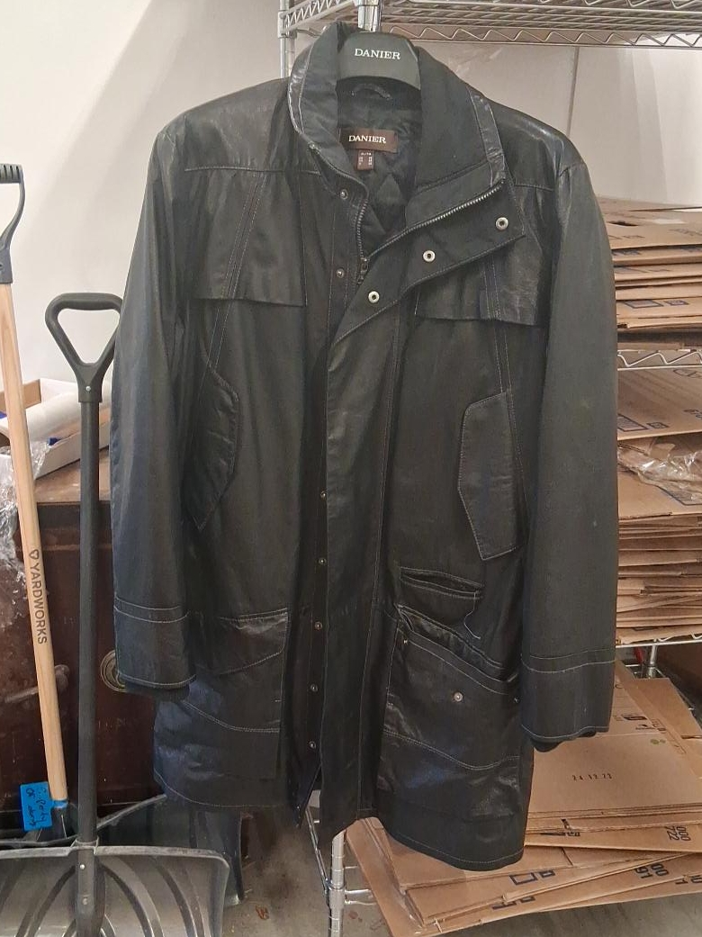 Selling a Danier black leather jacket in size XL. It's in great shape and ready for a new home! The jacket is made of leather and features a stylish design. Perfect for keeping warm and looking sharp during the cooler months