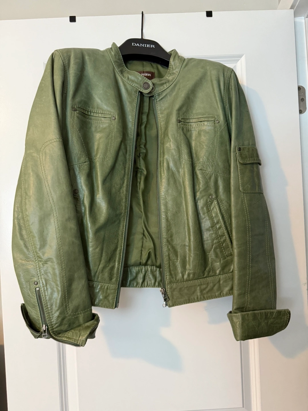 36Selling a Danier leather jacket in a lovely green colour! It's a size S/P. This jacket is in great condition and ready for a new home!