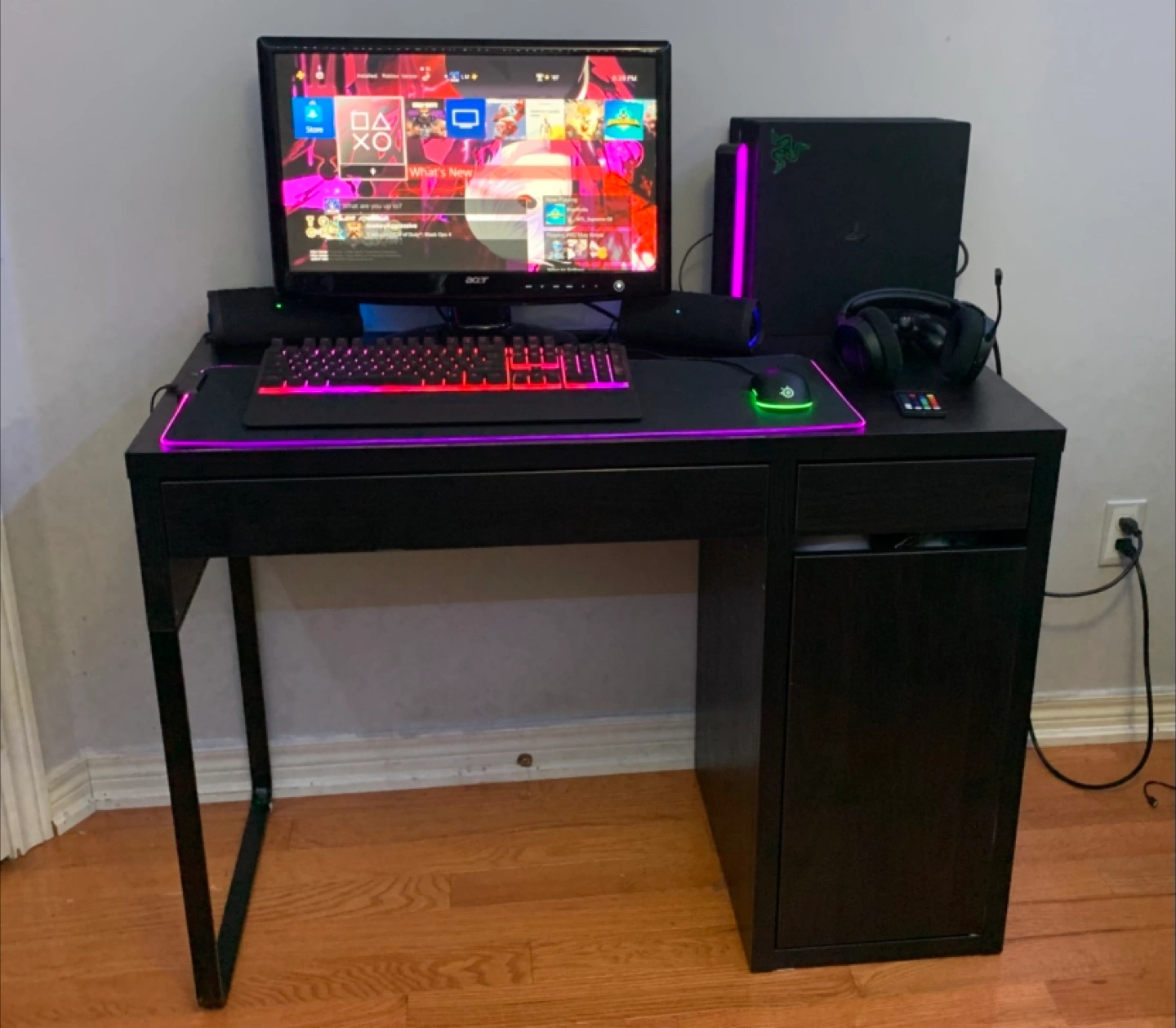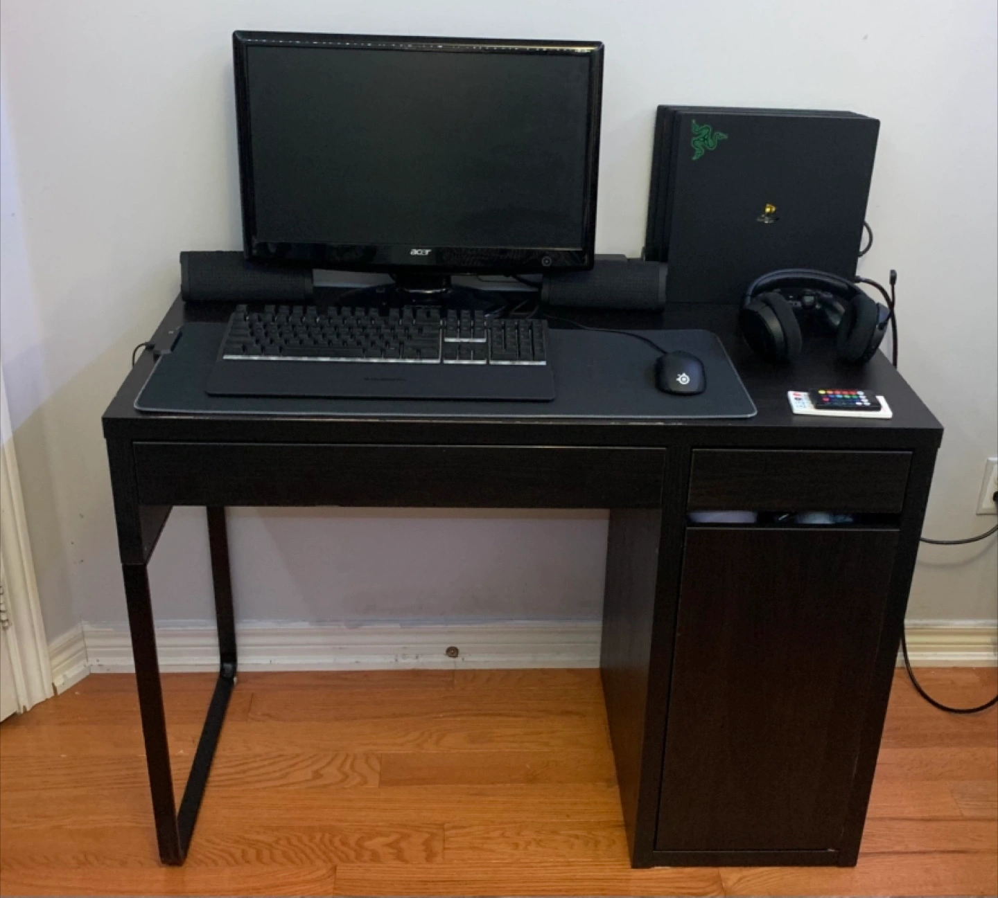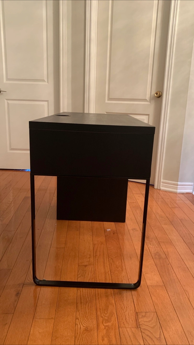 10A dark brown desk. Features a drawer and a cabinet with a handle. Has a hole for wires. This desk offers a dedicated space where you can focus. IKEA Desk Available for pickup only