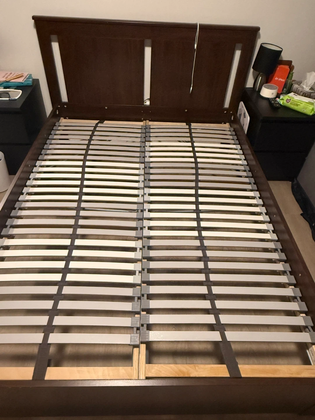 60For Sale: Double/Full Bed Frame – $150 Selling a sturdy double bed frame in great condition. There’s a scratch on the inside, but it’s not visible once assembled. You can check the photos for details. 📍 Pickup only – Quadra location ⏰ Available until Sunday, any time 💰 $150 Cash only. DM if interested!