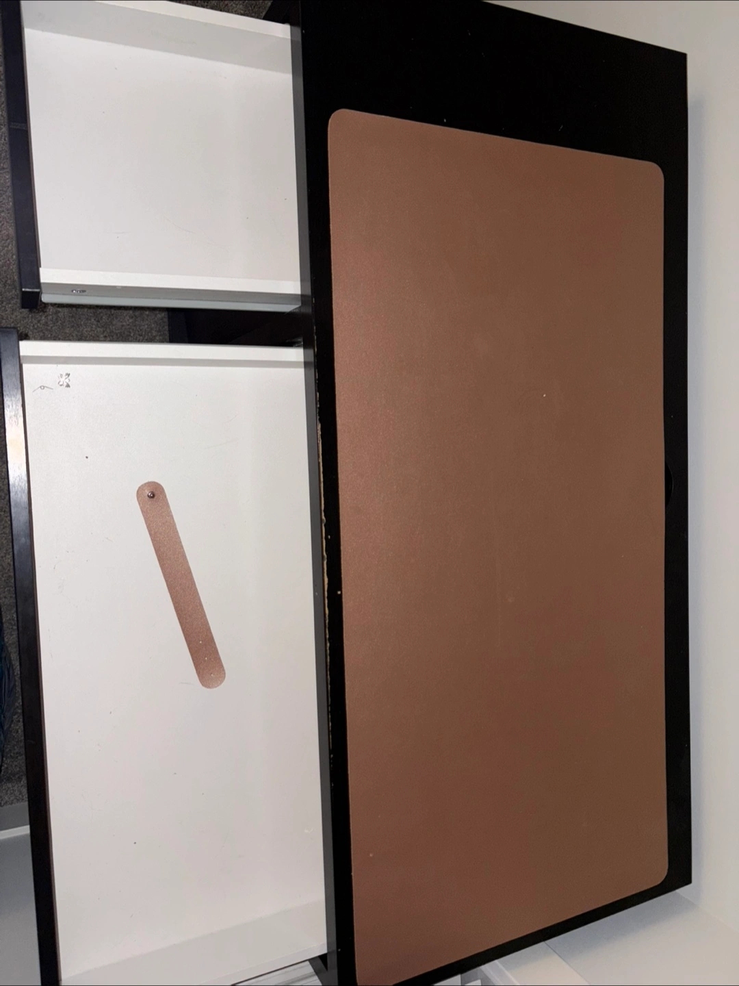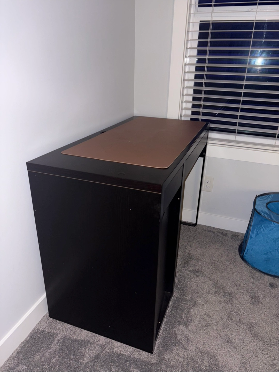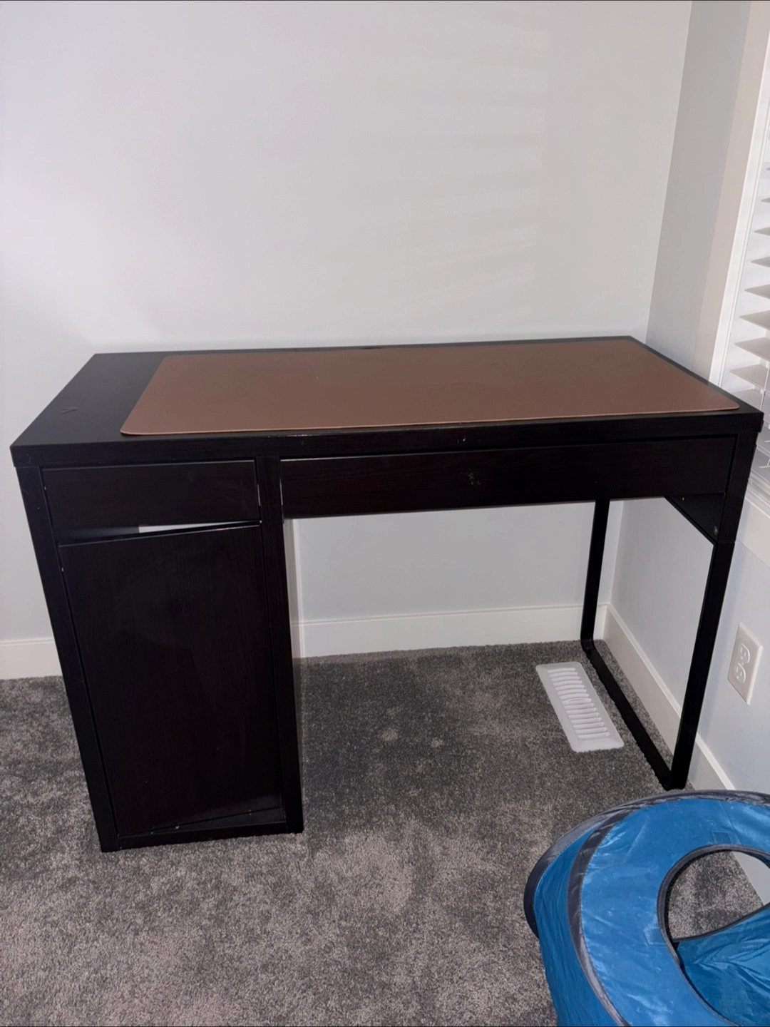 Selling a dark brown IKEA desk! It has a decent amount of wear and tear mainly on the top surface, as you can see in the photos, but it's still a sturdy and functional piece of furniture. Perfect for a home office or student space! Cabinets and drawers are fully functional, shelve arrangements come with the desk on the side.