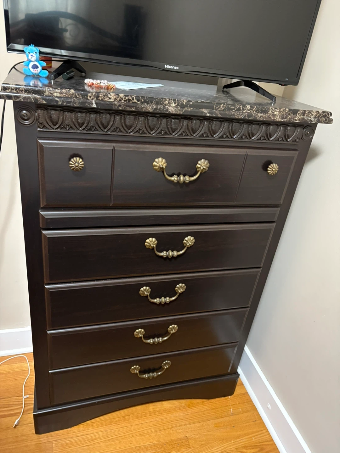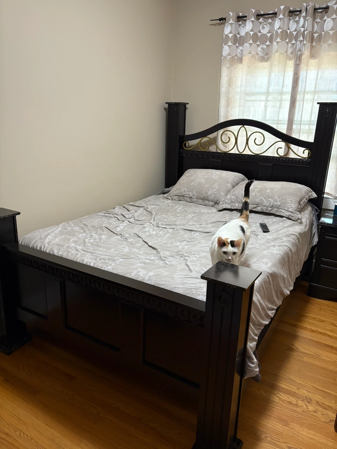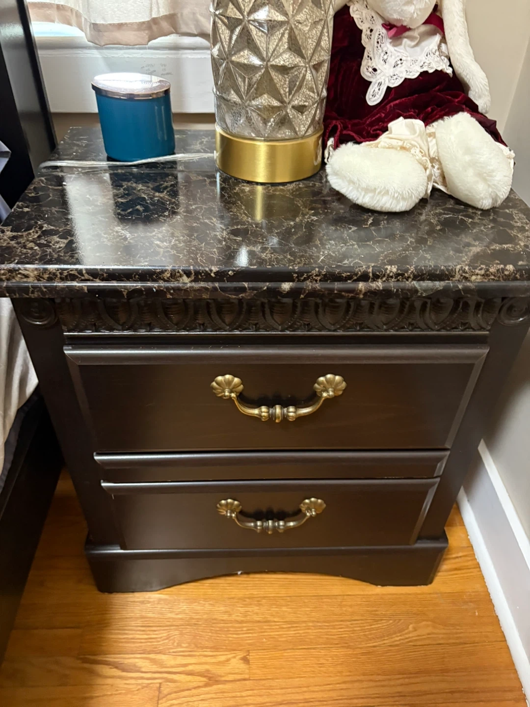 Queen size bedroom set- included 4 piece queen bed, 2 night stands and tall dresser. All drawers work perfectly. Some small surface scratches from normal use. Set is in good condition and would be a great addition to any bedroom! Pick up is near polo park.