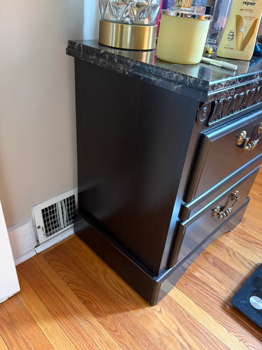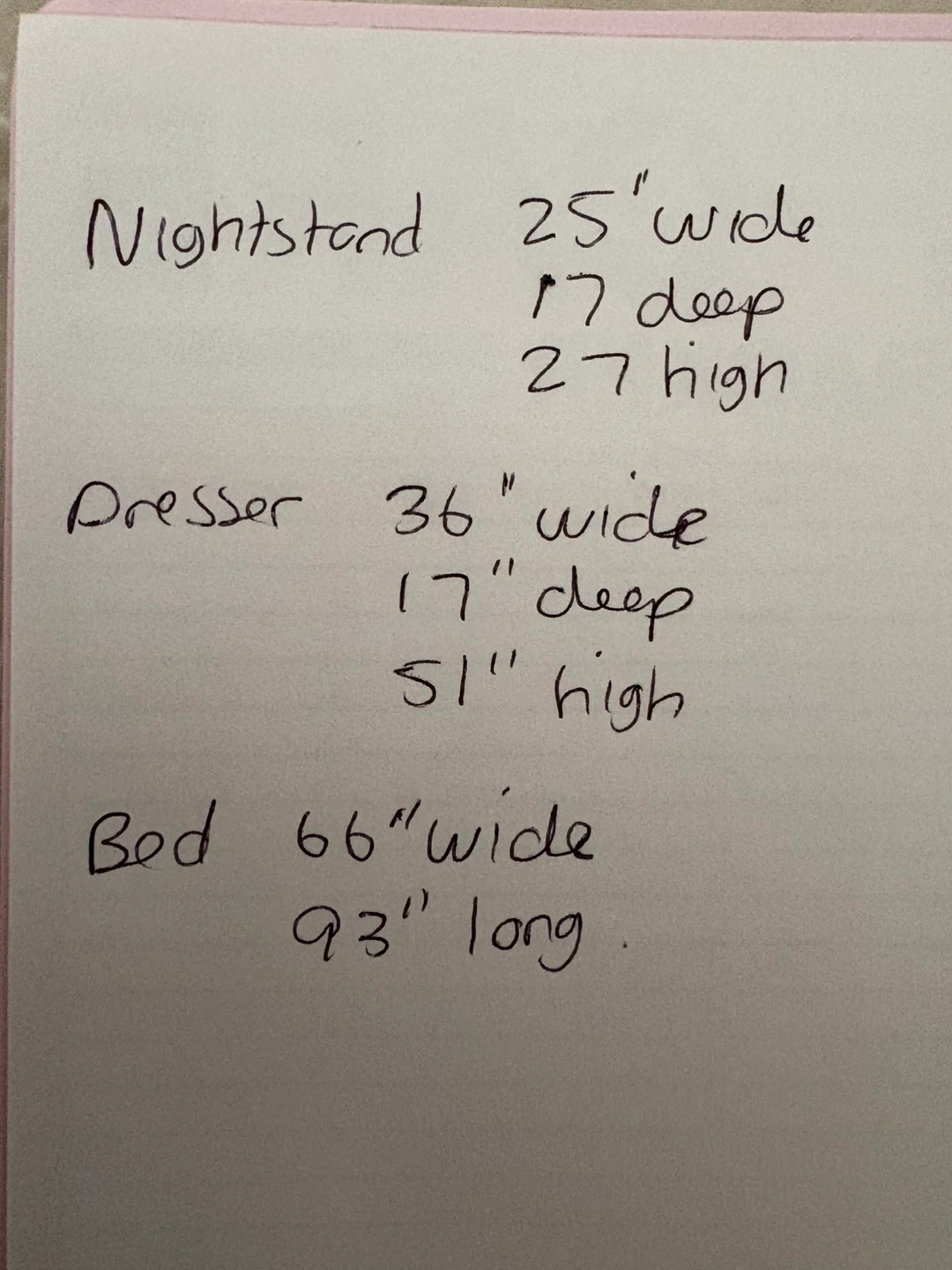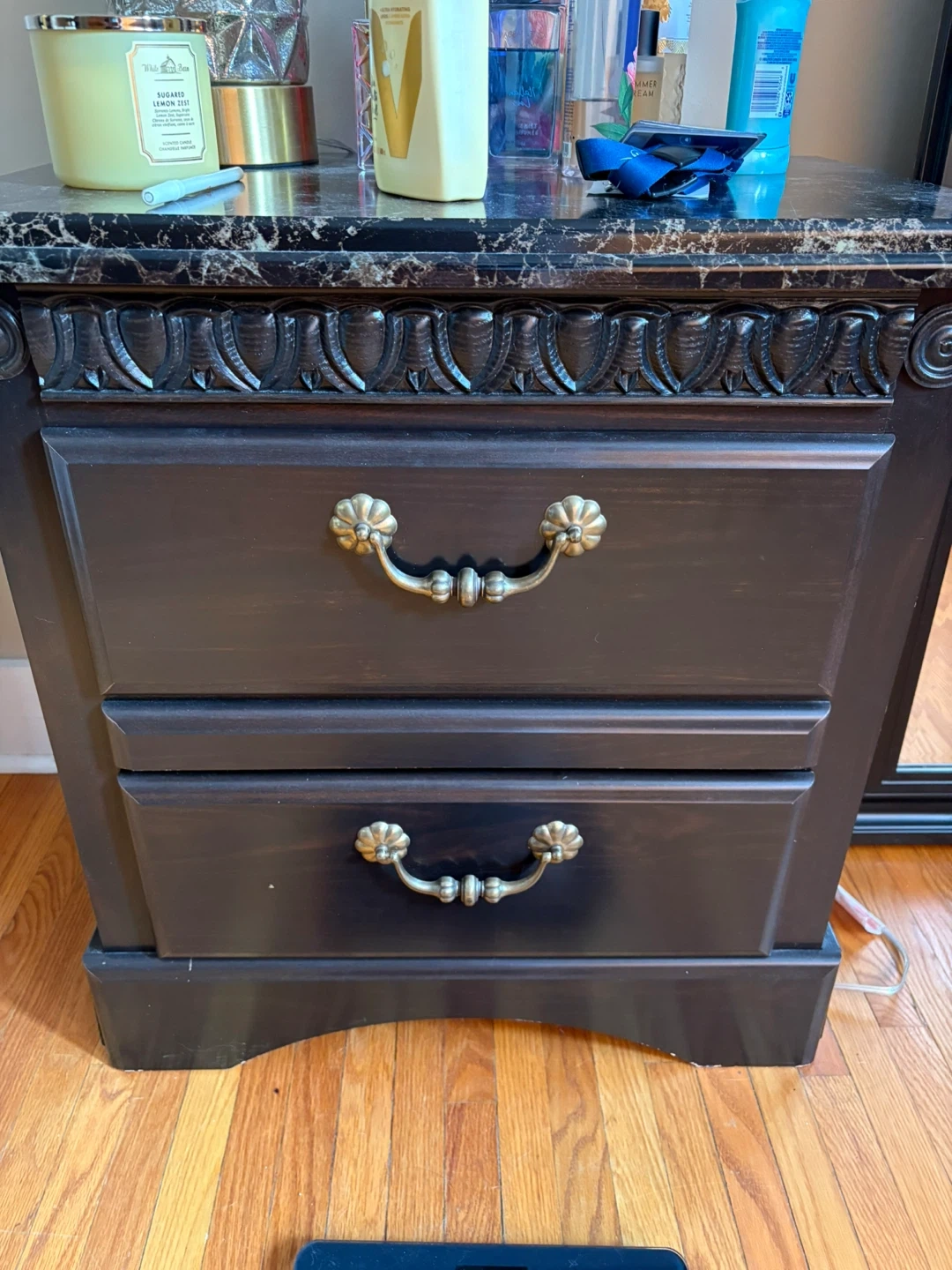 Queen size bedroom set- included 4 piece queen bed, 2 night stands and tall dresser. All drawers work perfectly. Some small surface scratches from normal use. Set is in good condition and would be a great addition to any bedroom! Pick up is near polo park.