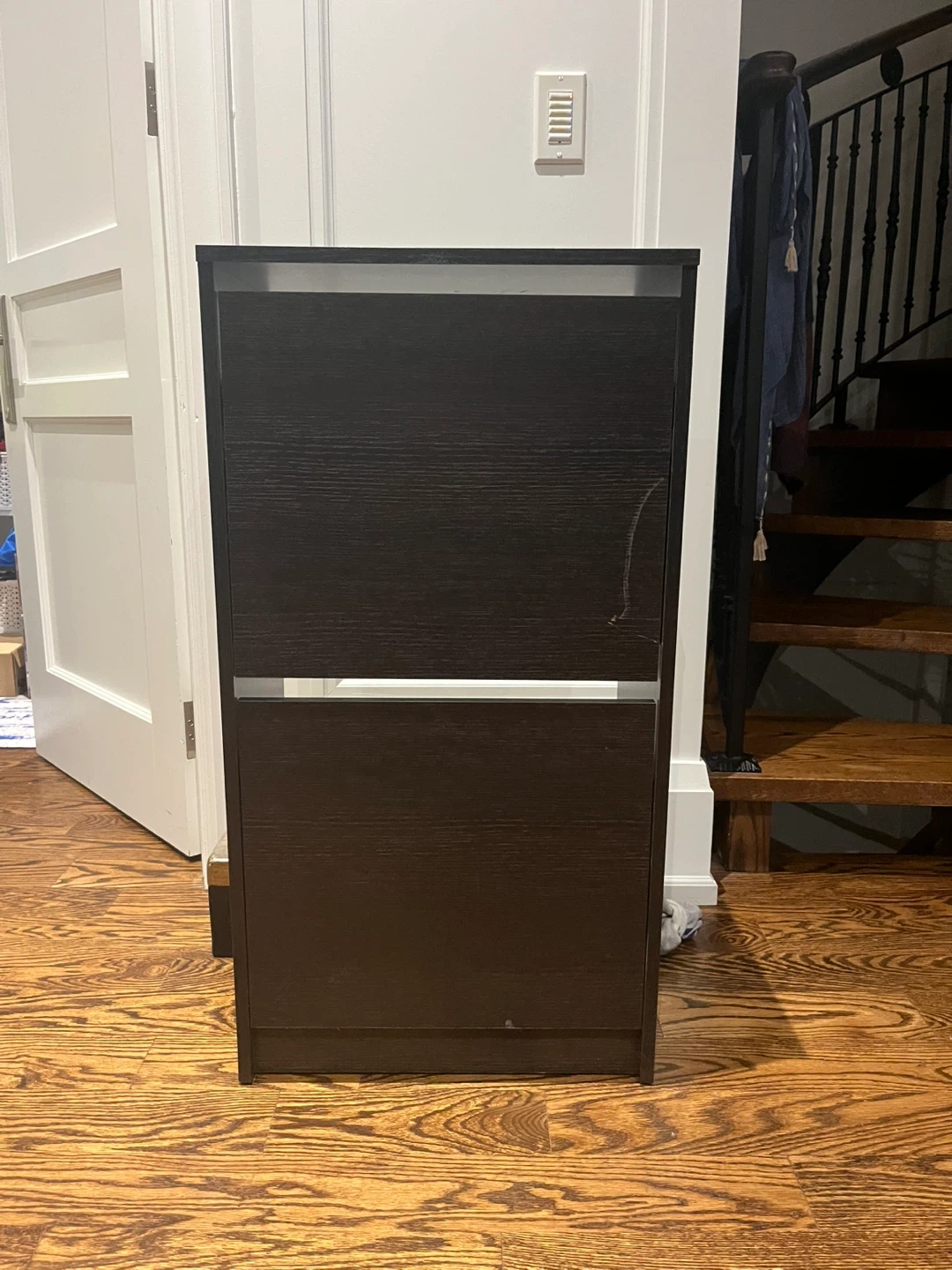 36Selling a dark brown shoe cabinet! It's in great condition and perfect for keeping your entryway organized. It features two shelves and a sleek design to fit any decor. Pick up location Yonge yonge and steels