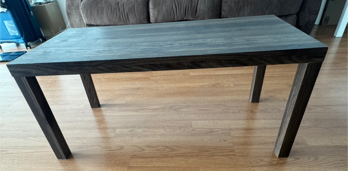 10Selling a dark brown wood coffee table. It's in great shape and would look great in any living room or den. It's a sturdy table with a nice wood grain finish. Perfect for coffee, books, or decor