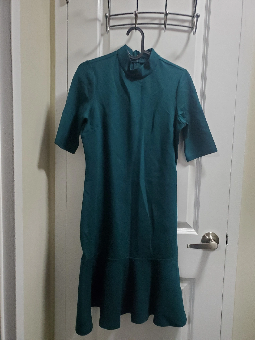 22Lovely dark green dress. Perfect for fall! Reitmans size XS. It features a high neckline and a flattering silhouette. New. Never worn. Wrinkled as it was folded. Smoke-free, pet-free Pick up only near Port Credit Go station in Mississauga