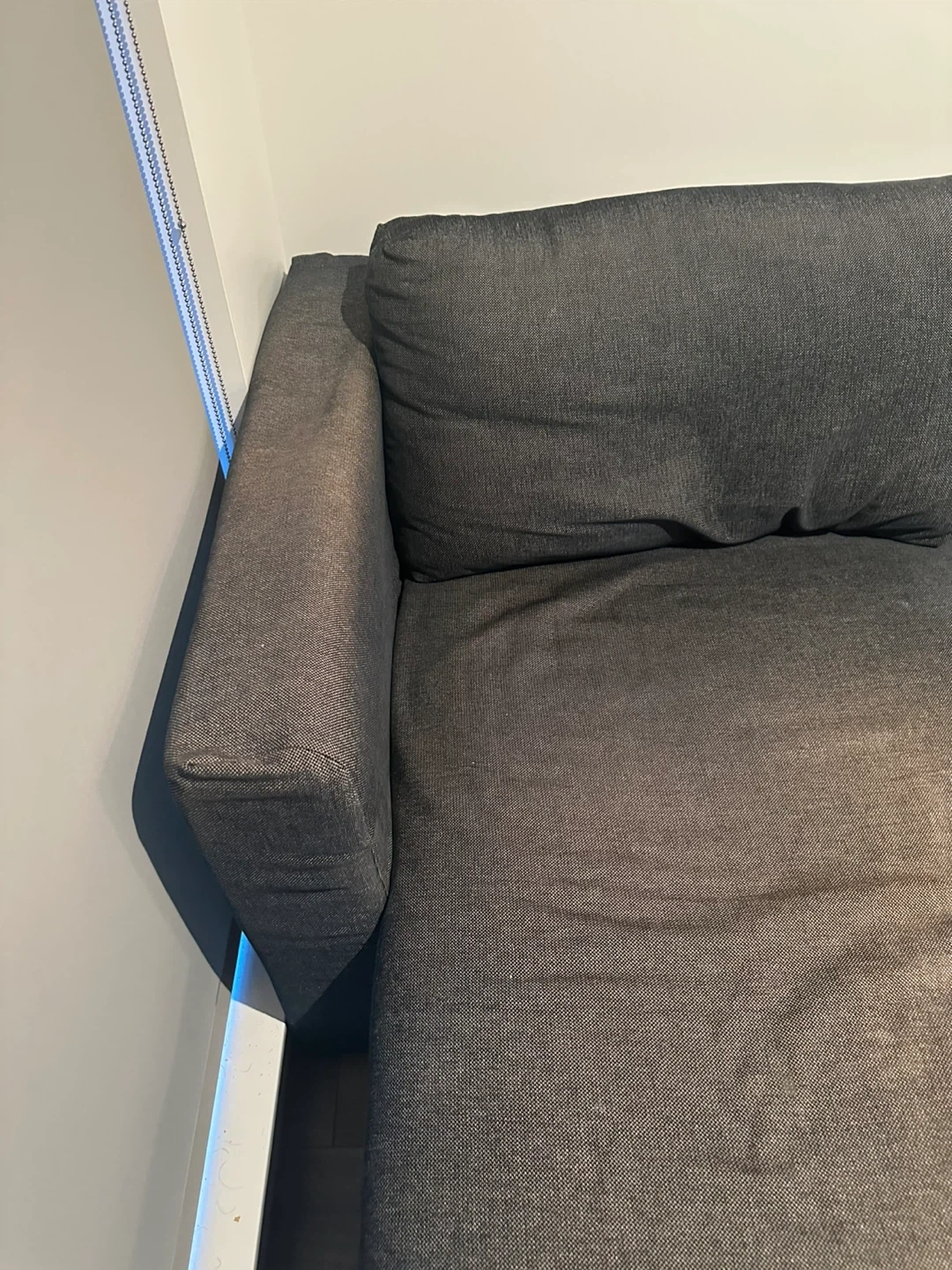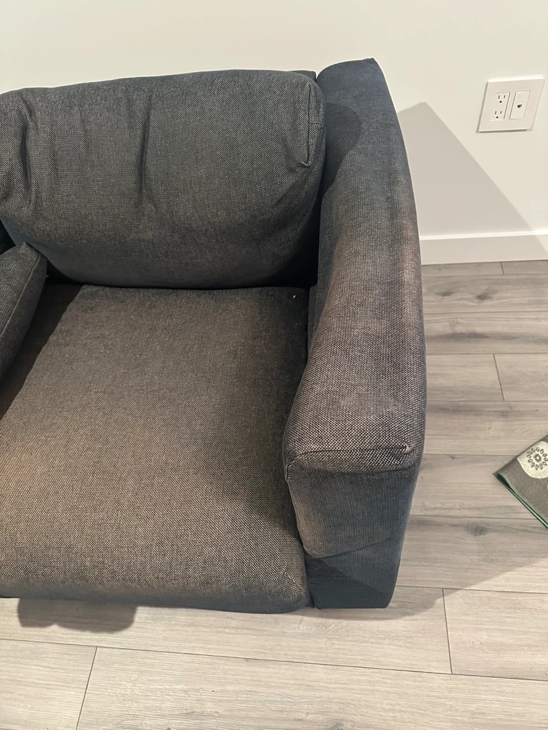 70Selling a dark grey sectional sofa. It's in good condition and would be a great addition to any living room! It's a comfortable and stylish piece of furniture that's perfect for relaxing or entertaining guests. Both arm rests are broken.