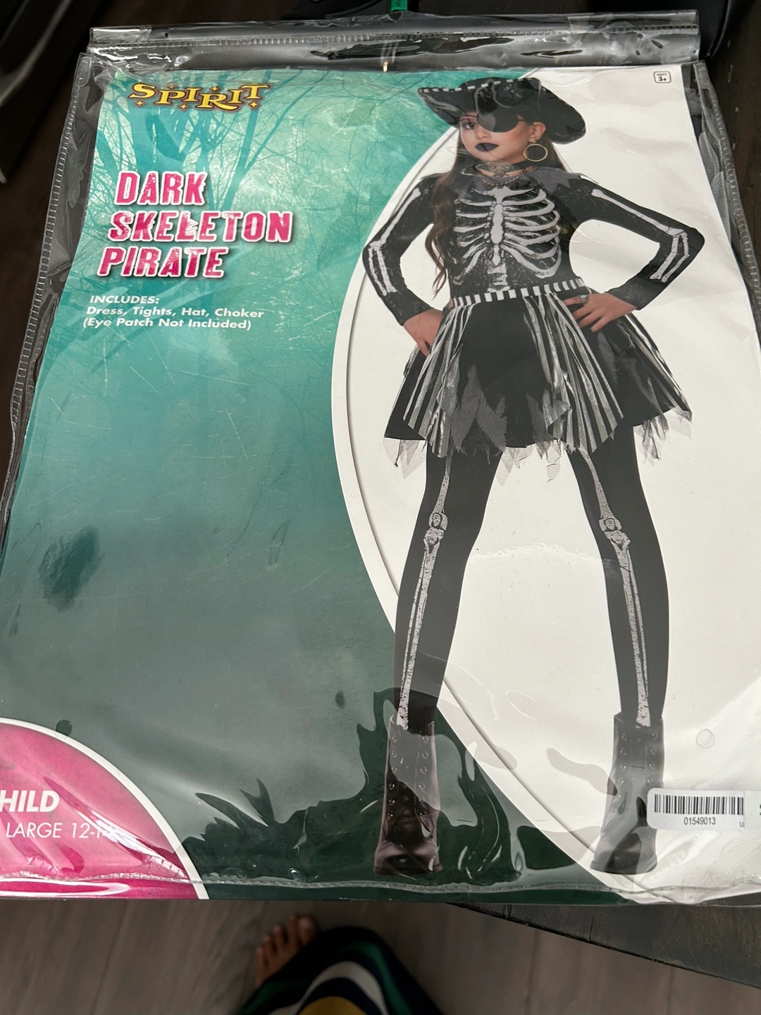 154This is a child's costume that includes a dress, tights, hat, and choker. Brand New (never used - kid didn’t want to be a skeleton) Pick up only.