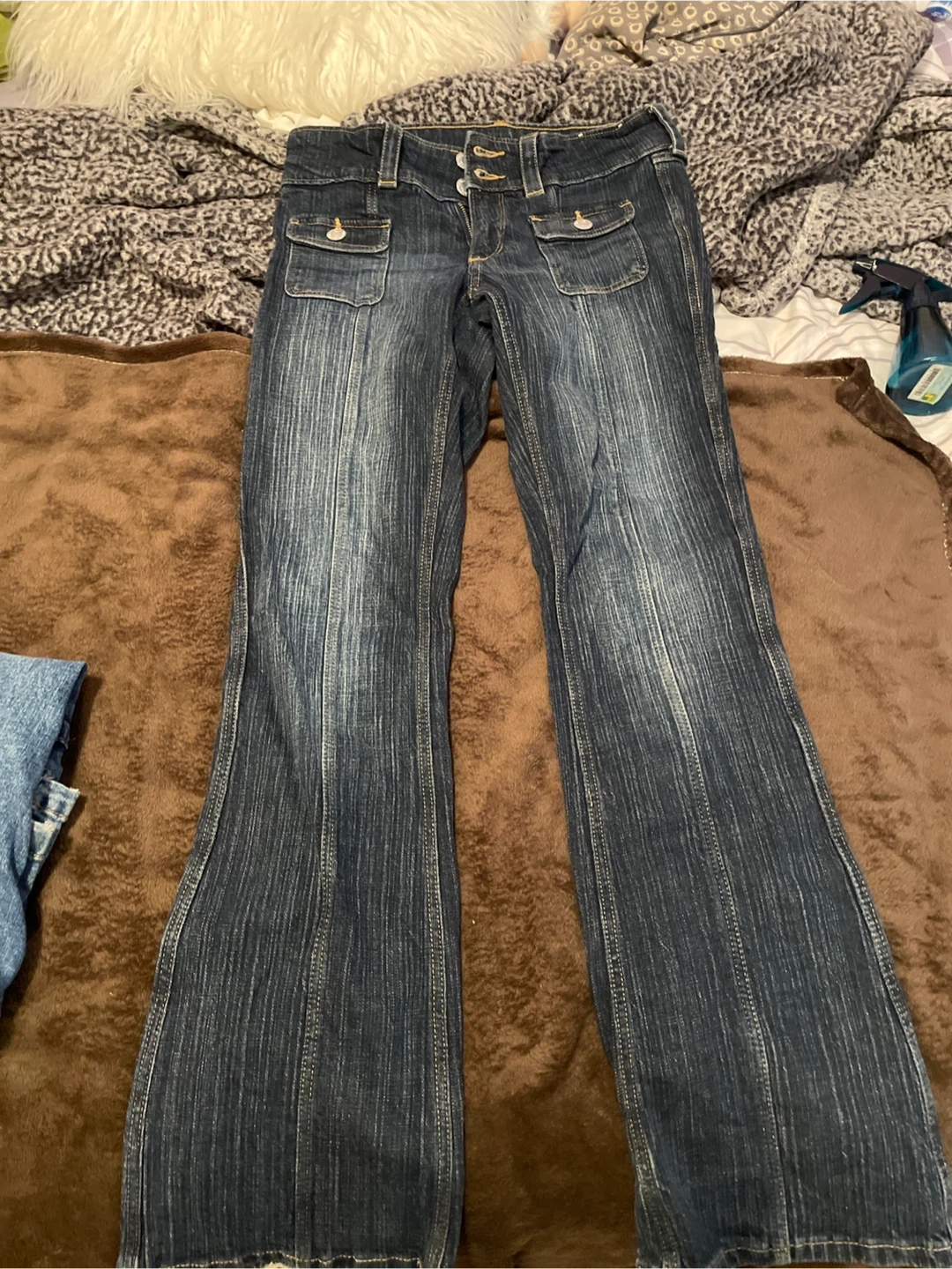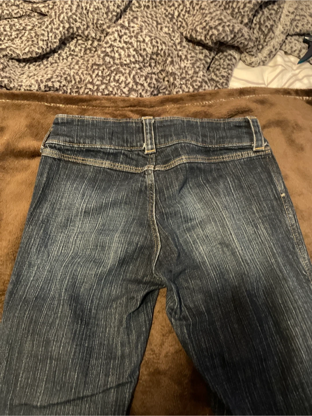 10Dark wash flare jeans in good condition! They have a stylish, retro look and are perfect for adding a touch of flair to your wardrobe. (Size 11-12 teens)