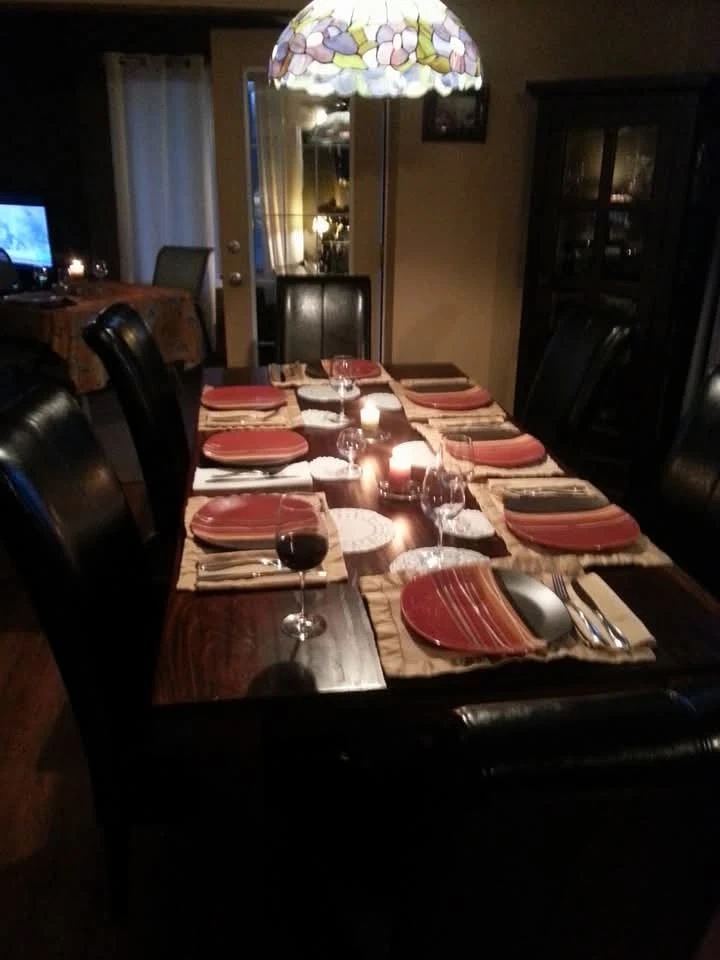 5Selling a dark wood dining table. It's in good condition and would be perfect for family dinners or gatherings with friends. The table has a beautiful, rich finish that adds a touch of elegance to any dining room