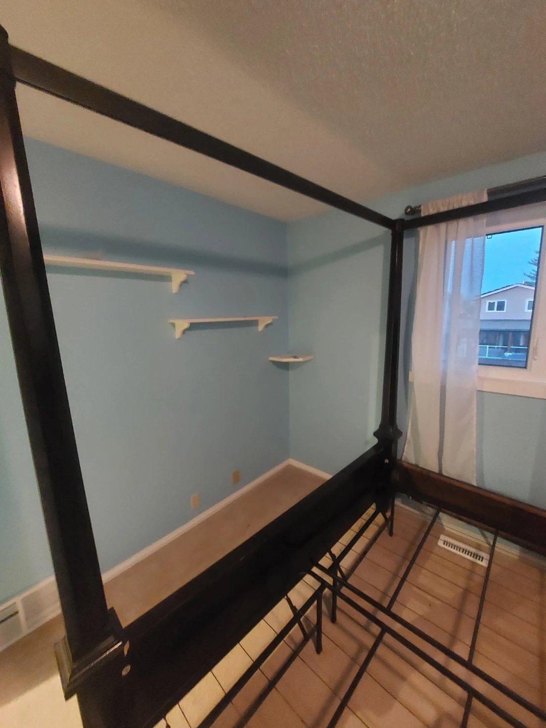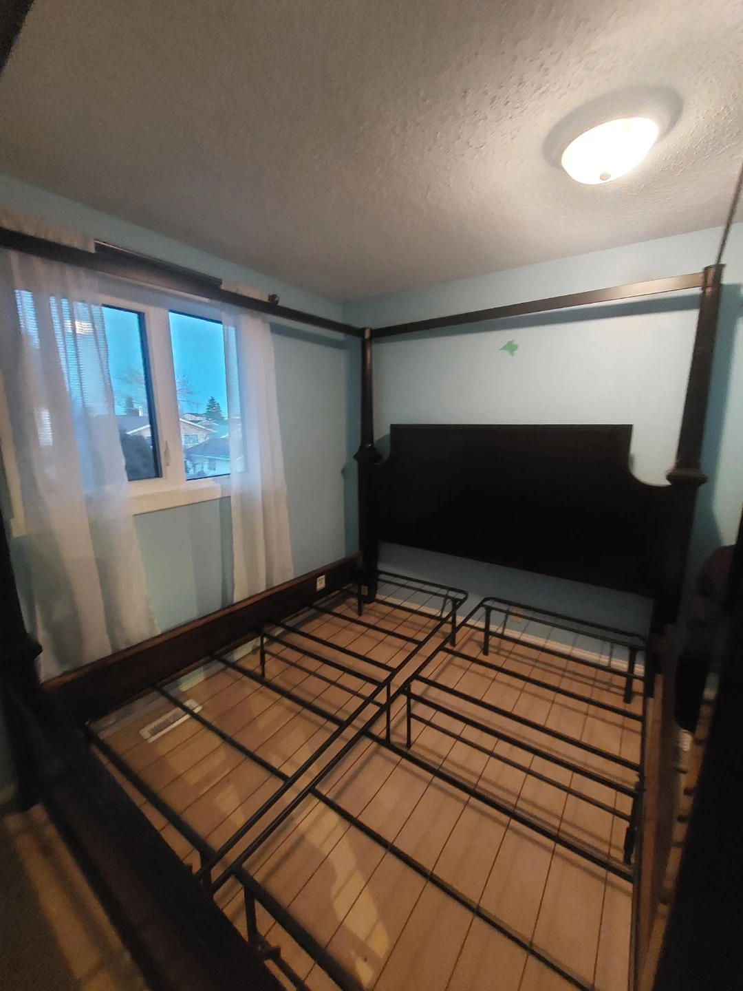 80Selling a solid dark wood four-poster bed frame. It has some scratches on the corner post, as shown in the photos. Very easy to put together. Located in New Brighton.