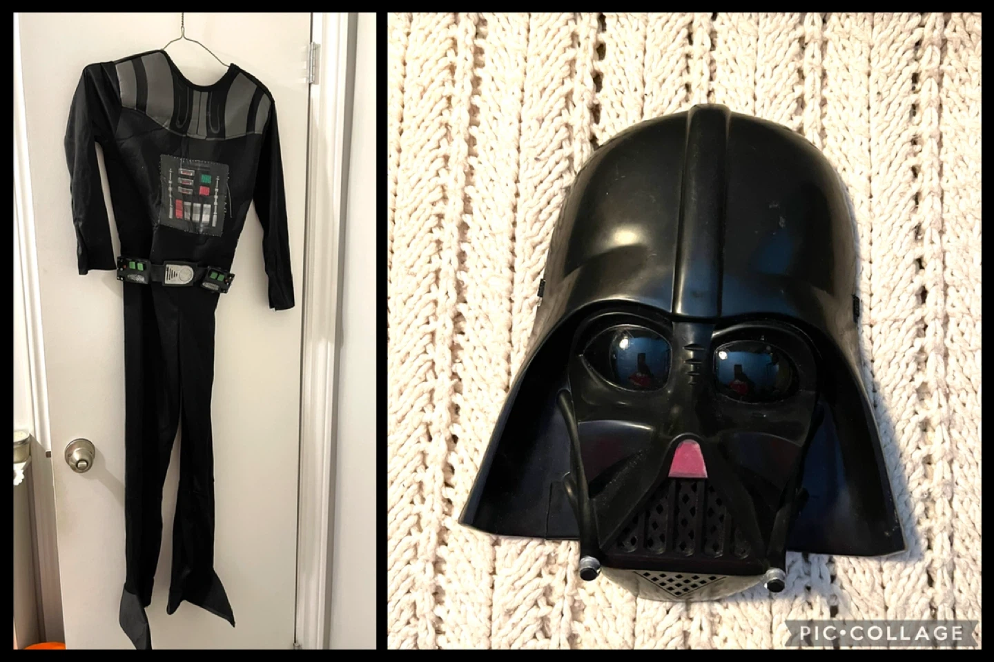 Selling a Darth Vader costume, perfect for your little Star Wars fan! Includes the jumpsuit with attached boot covers and the iconic Darth Vader mask. Great for dress-up or Halloween! Costume body is around 4’