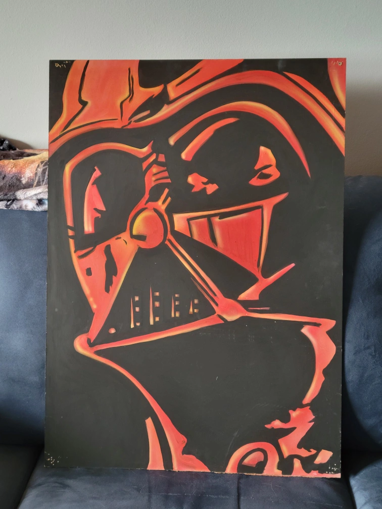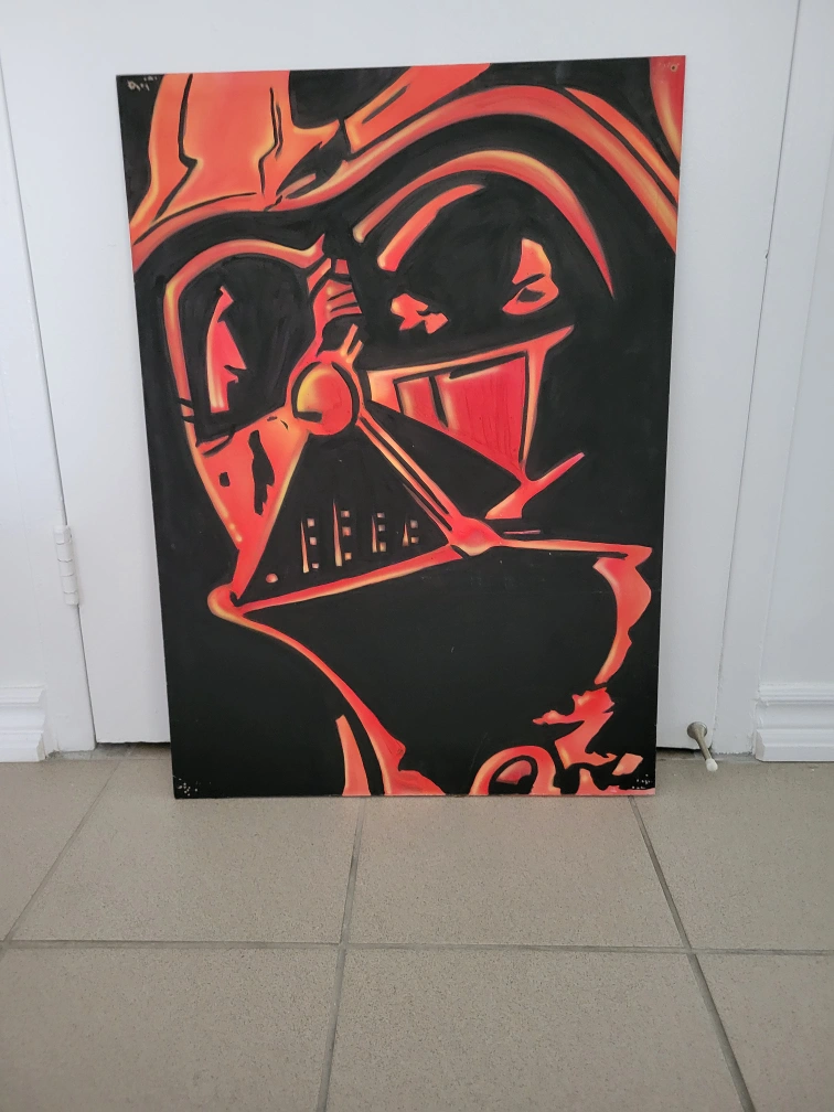 Original painting of Darth Vader's Mask done in black and orange on particle board. Size 21.5"w x 30"h It could be a great addition to a Star Wars collection. Non-smoking household. No drop-offs.