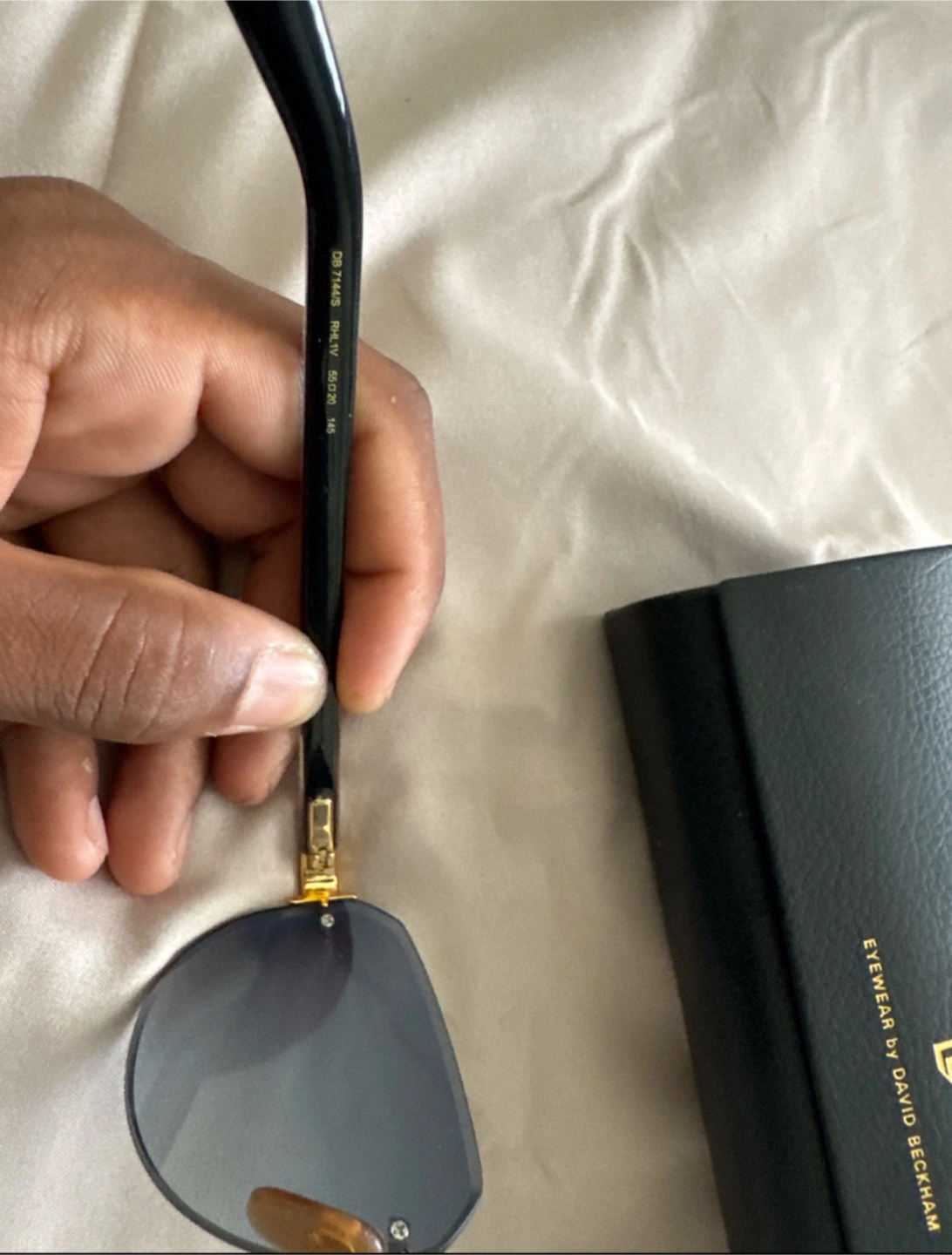 23Selling a pair of David Beckham DB 7144/S sunglasses. They come with the original case and a cleaning cloth. The sunglasses have a sleek design and are in great condition. Stylish and perfect for sunny days!