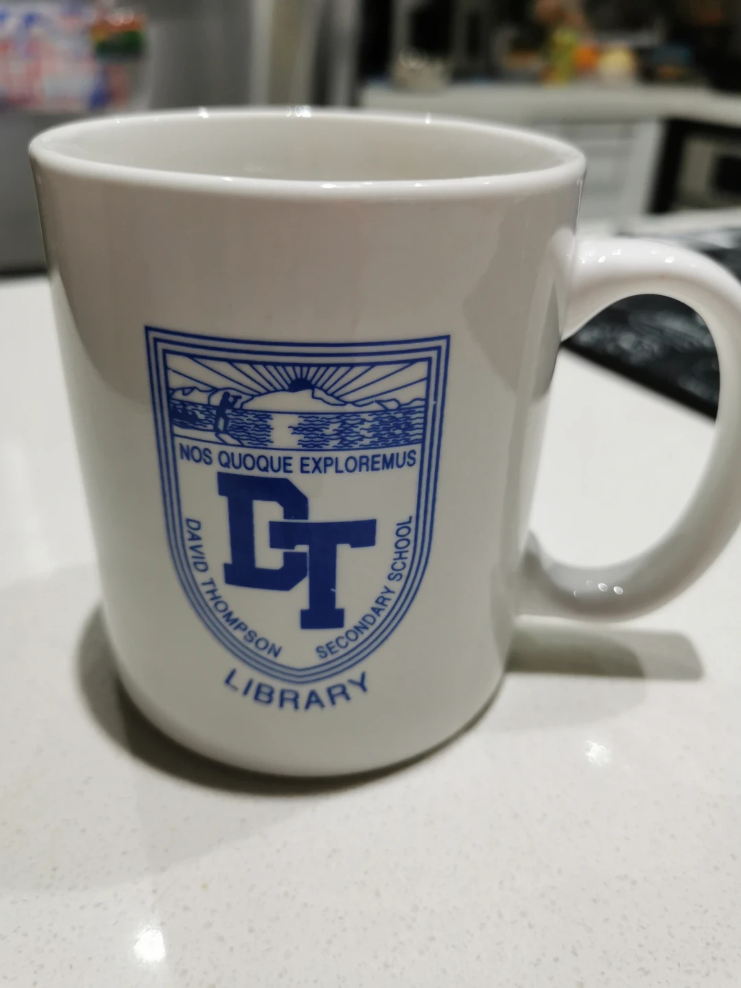 65Here's a mug from the David Thompson Secondary School Library. It's in great shape and ready for a new home! No cracks or chips.