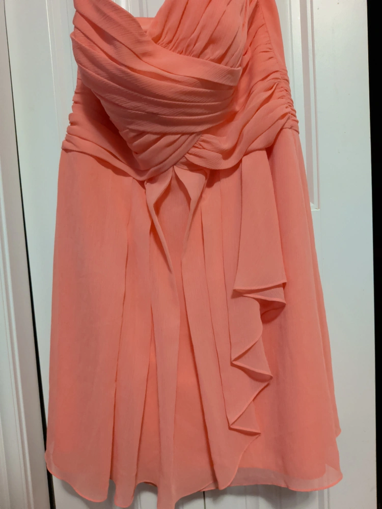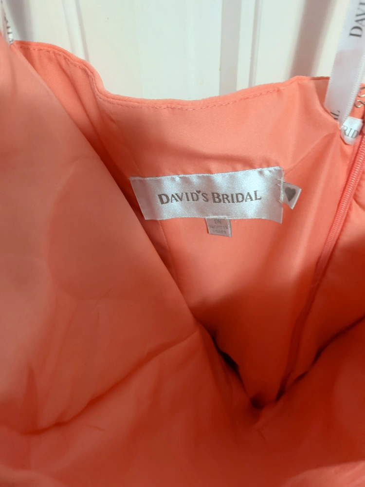 72Selling a beautiful coral dress from David's Bridal! It's in great condition and perfect for a special occasion. The dress features a flattering design and is made with quality materials. Feel free to reach out if you have any questions!