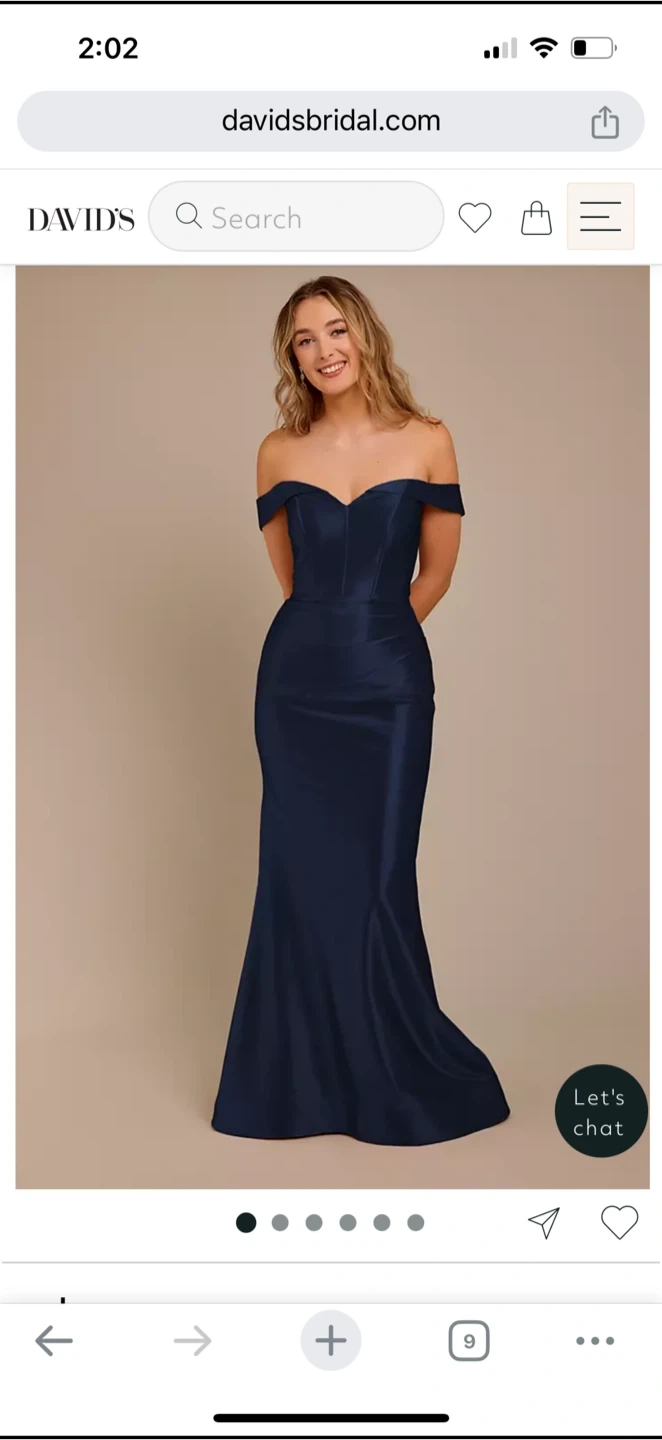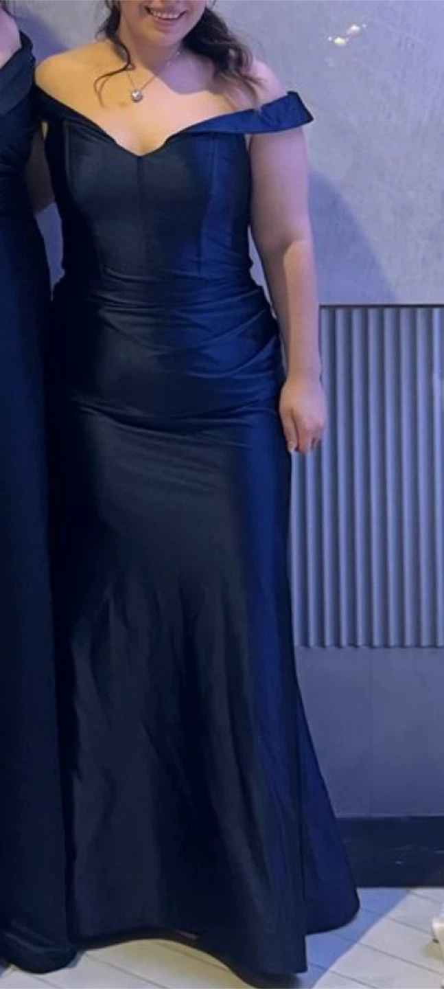 Selling a beautiful David's Bridal off-the-shoulder gown. It's a stunning navy colour and has a lovely silhouette. Perfect for a formal event or special occasion! Has only been used once. Price may be negotiable for a reasonable offer.