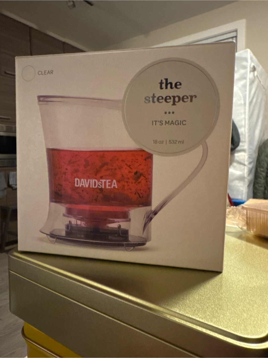 Selling a brand new DAVIDsTEA The Steeper! It's still in its original packaging and ready for a new home. It holds 18 oz / 532 ml, perfect for brewing your favourite loose leaf teas. It's magic!