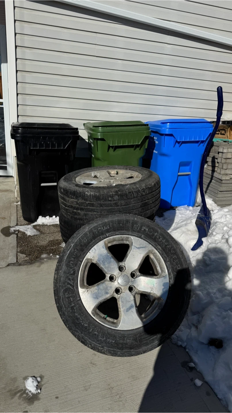 265/60/18 rims and tires for Jeep Grand Cherokee 2011. 3 tires are in very good condition 70-80% one tire is broken.