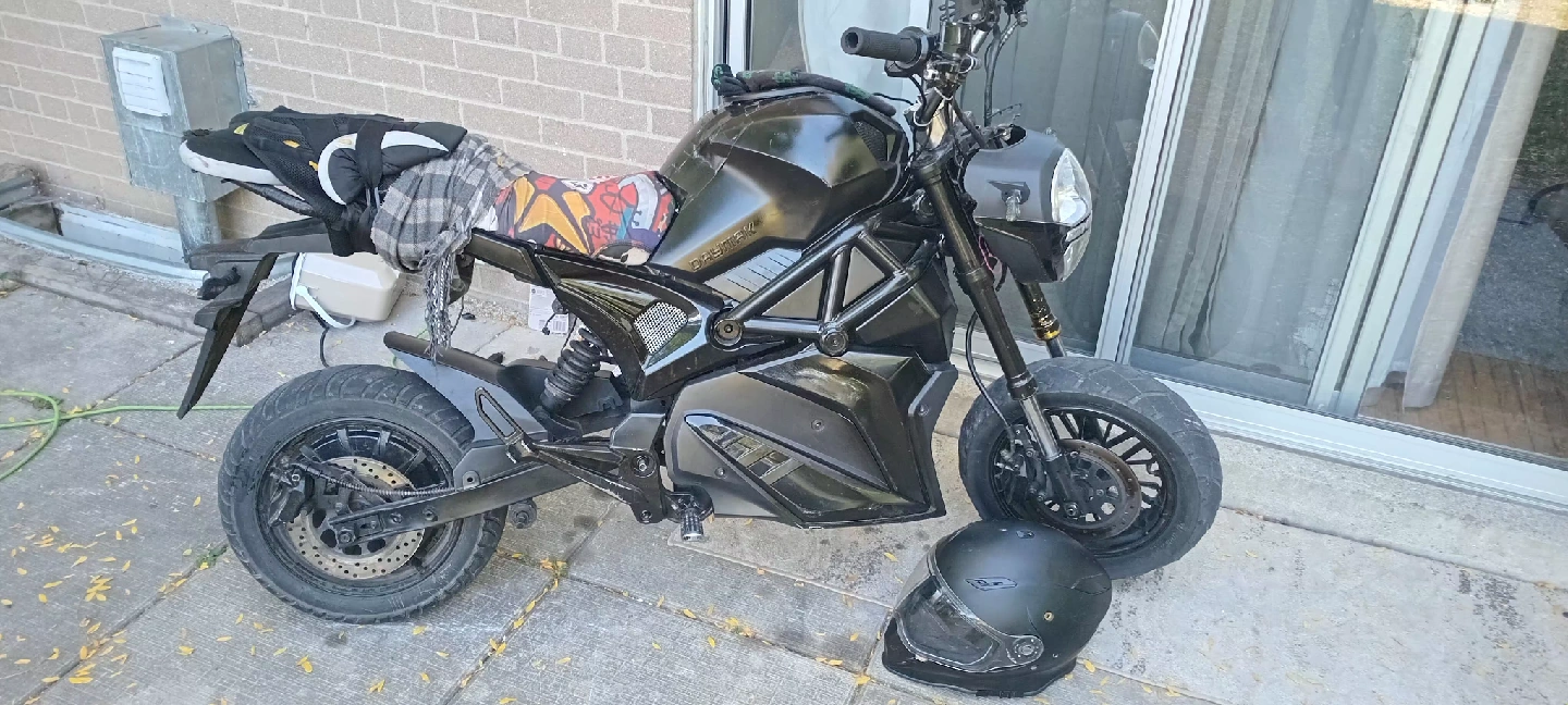 10Selling a Daymak electric motorcycle. It's black and appears to be in good condition. Perfect for getting around town! no battery just bike plug and play