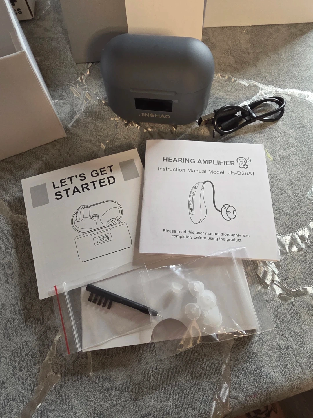 COMES WITH CHARGING CABLE - CLEANING BRUSH - DIFFERENT SIZES OF EARTIPS - - INSTRUCTION MANUAL
