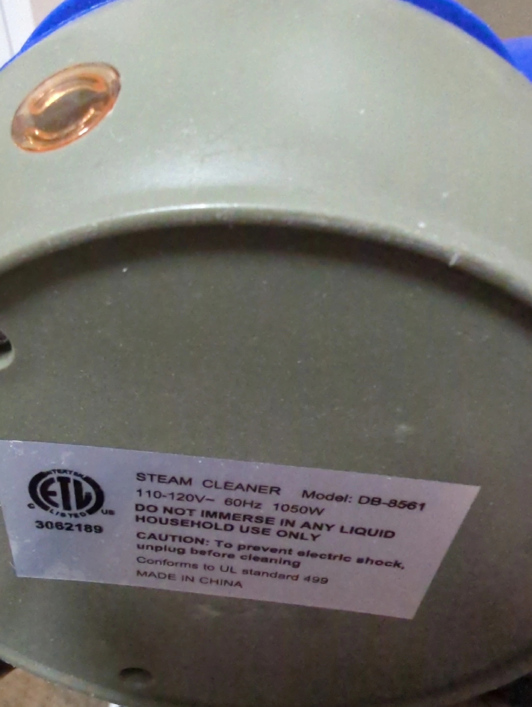 Selling a DB Tech steam cleaner, model DB-8561. It's perfect for household use only. This steam cleaner operates at 110-120V, 60Hz, and 1050W. Please remember not to immerse it in any liquid and always unplug before cleaning to prevent electric shock
