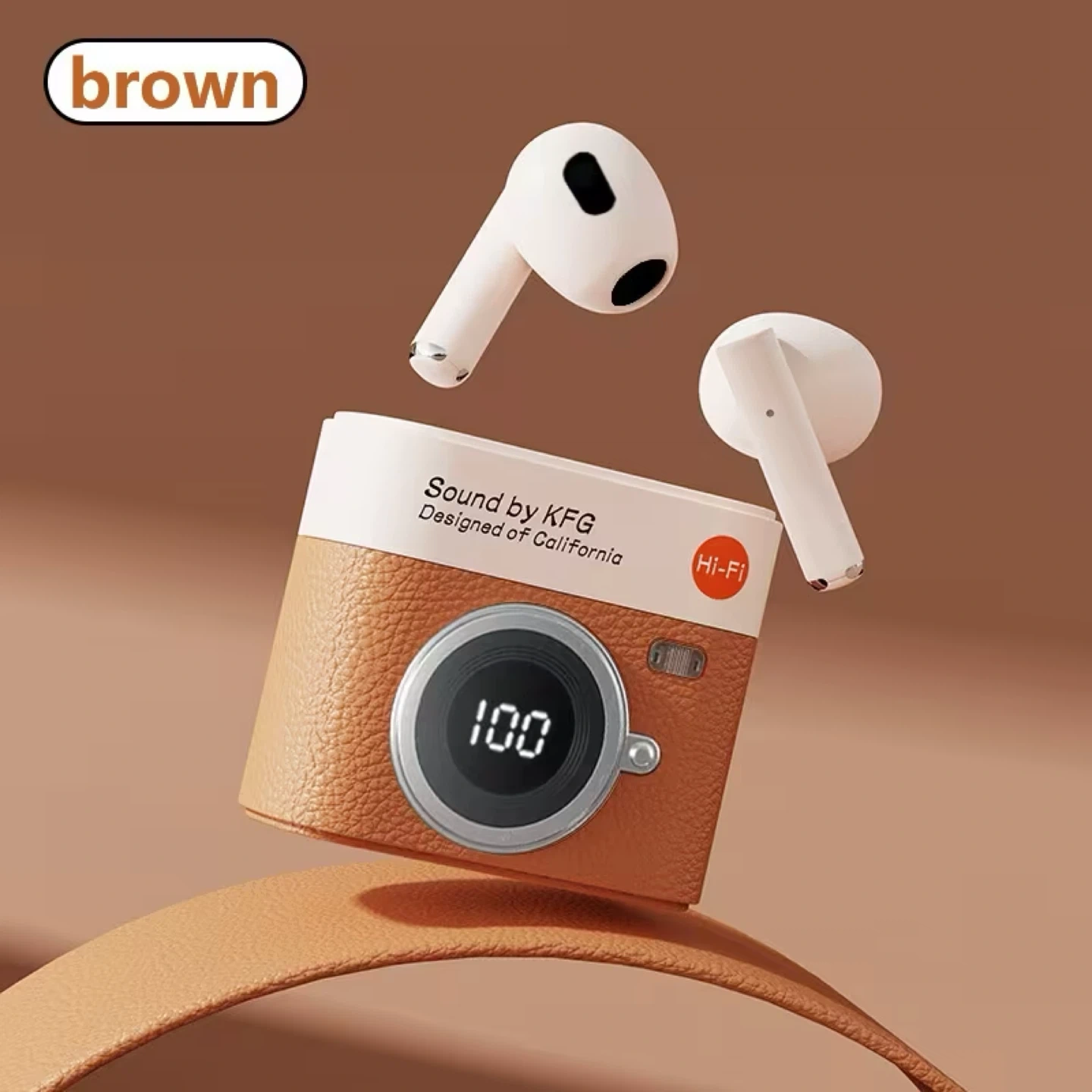 KFG True Wireless Earbuds - Brown Retro Camera Design