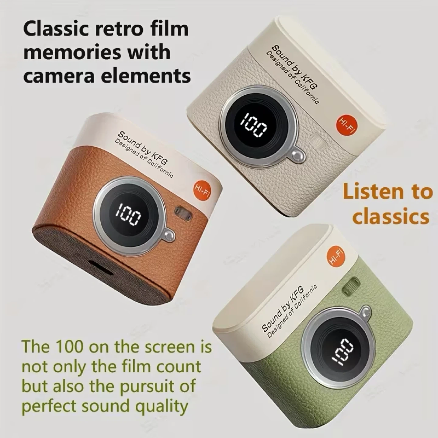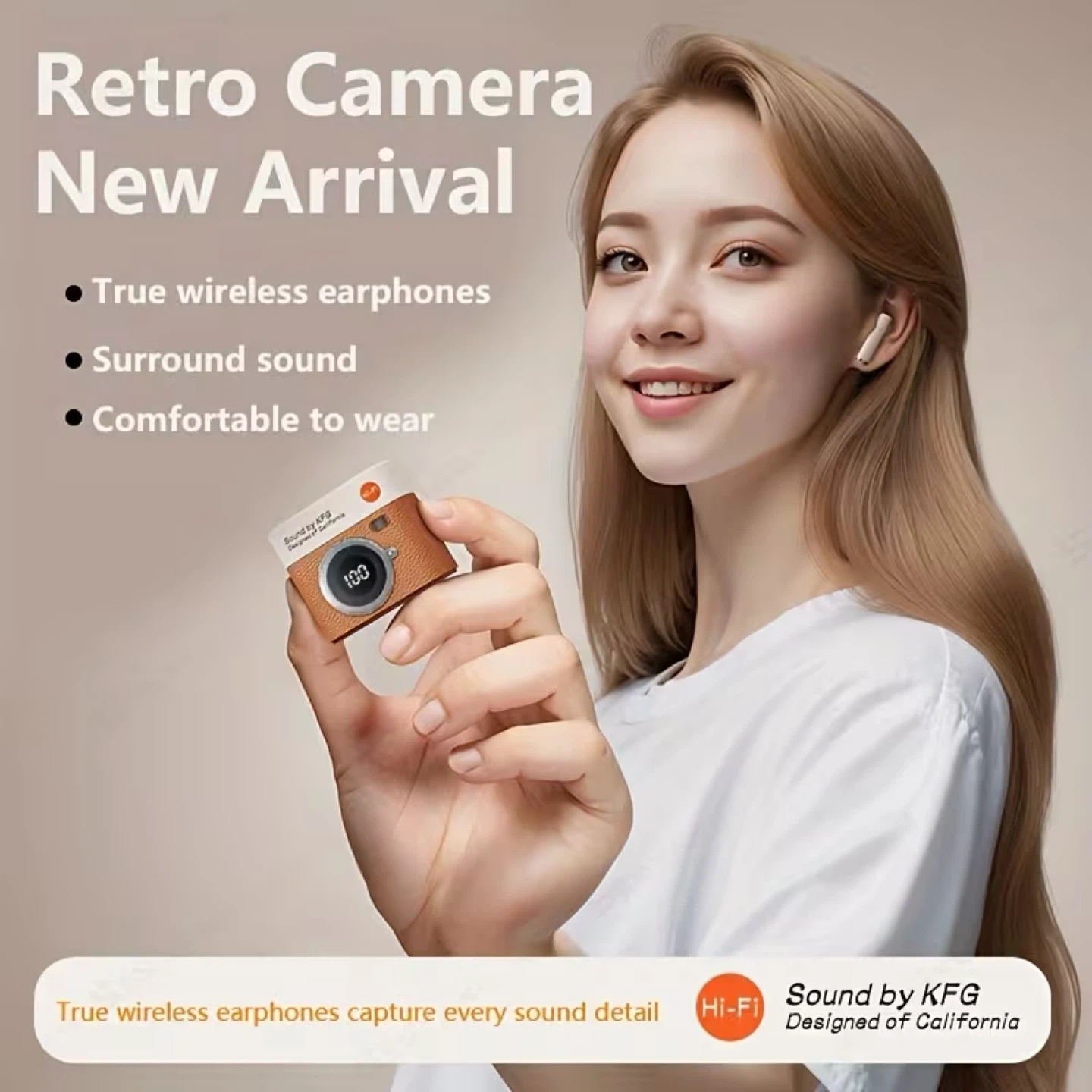 Sound by KFG true wireless earphones with a unique retro camera design. They feature surround sound and are comfortable to wear without outstanding sound performance and long battery life.