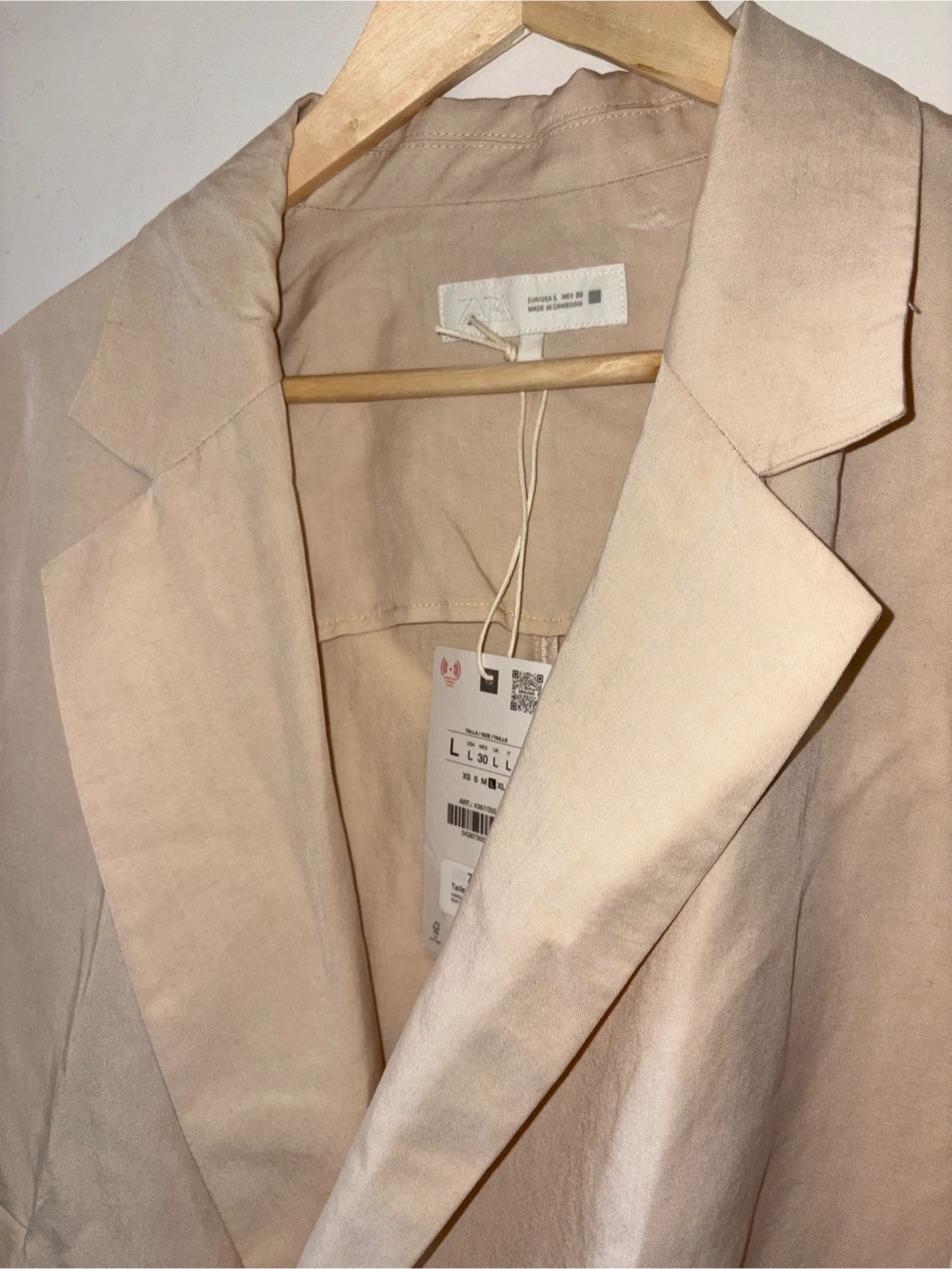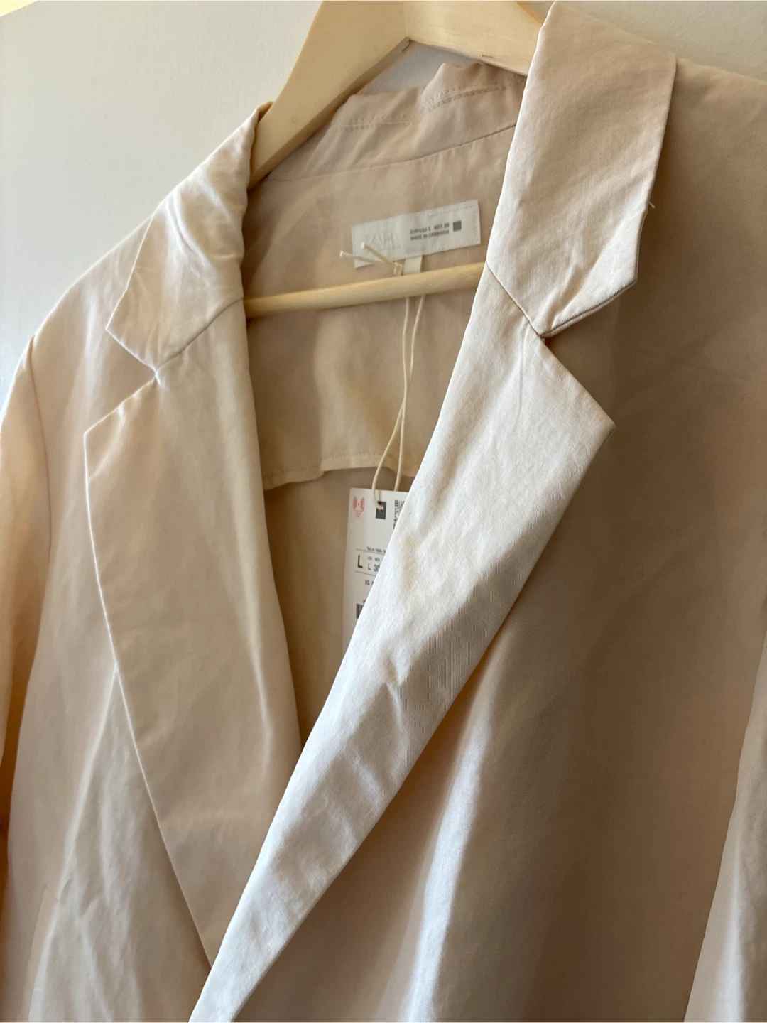 ZARA Beige Double-Breasted Blazer - Size L