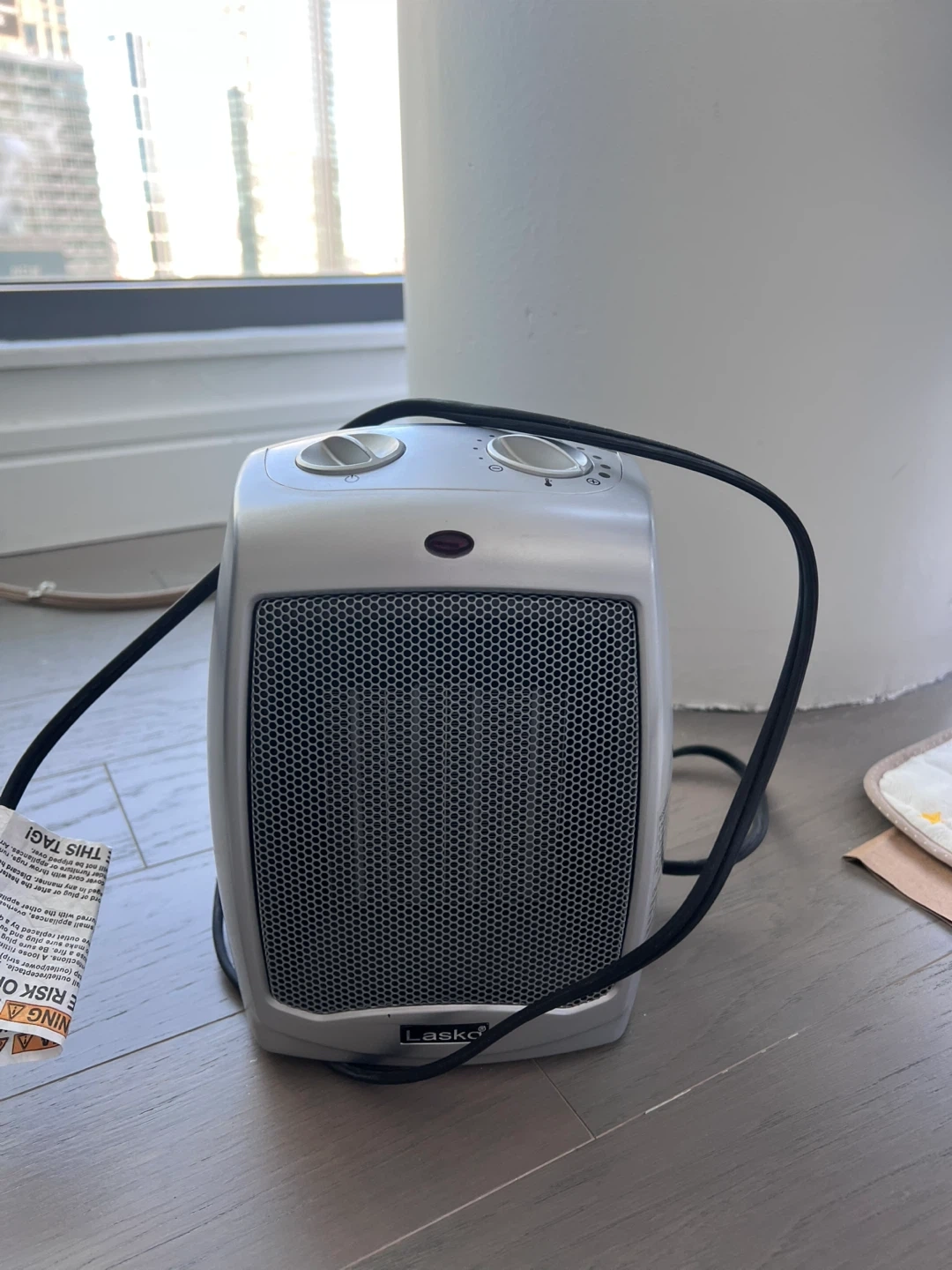 This Lasko ceramic heater has 3 settings for fan speed and temperature control. It's portable and great for small spaces. Plugs into a standard outlet.