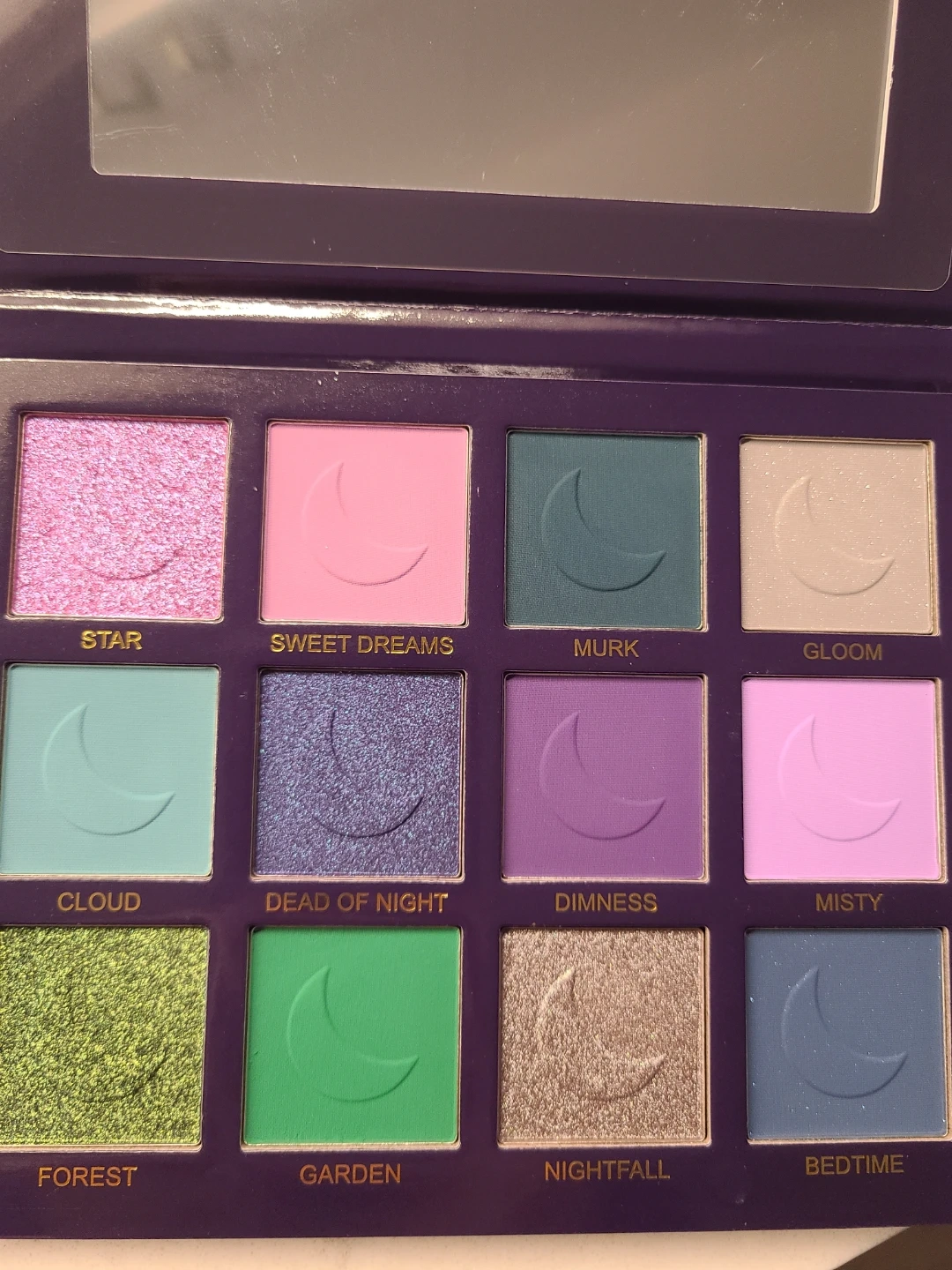 Unearthly Cosmetics DEAD OF NIGHT eyeshadow palette features 12 shades. It's designed for creating various looks with both matte and shimmer finishes.