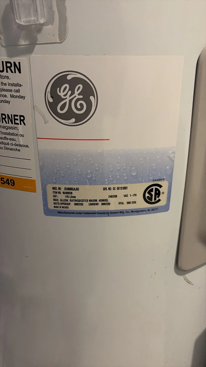 This is a GE electric water heater. It's a 40-gallon tank. It's a standard height model. 10 years old but limited usage as we didn’t really use hot water much in our business. Must pickup asap. Doing Reno’s so need gone.