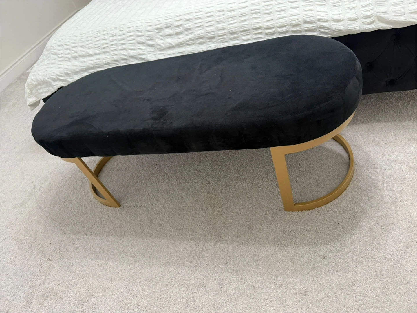 Black Velvet Upholstered Bench with Gold Metal Legs