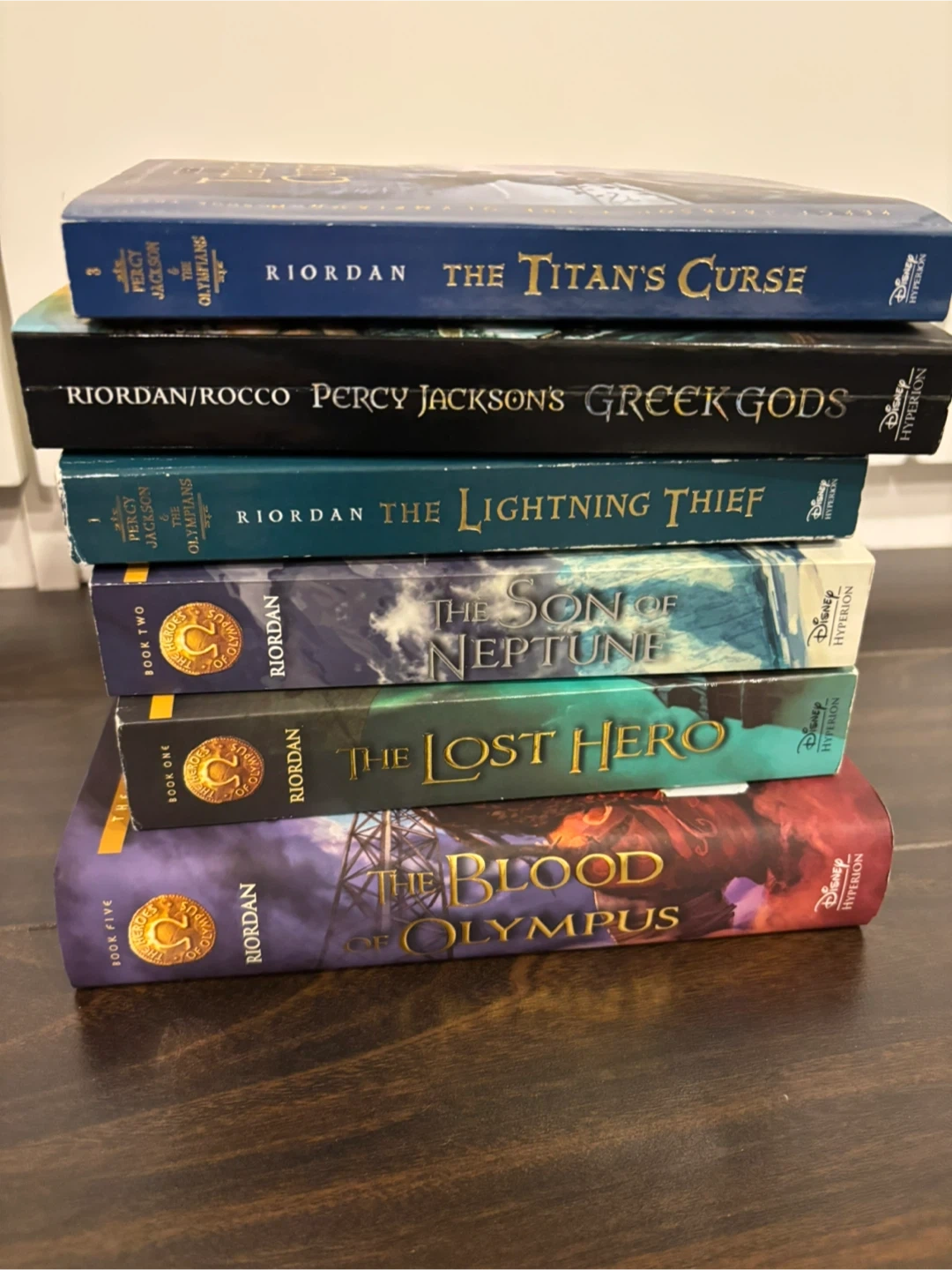 This is a collection of five Percy Jackson and the Olympians and Heroes of Olympus books by Rick Riordan. It includes The Titan's Curse, Percy Jackson's Greek Gods, The Lightning Thief, The Son of Neptune, and The Lost Hero. These novels are written by Rick Riordan. The books are aimed at young adult readers.