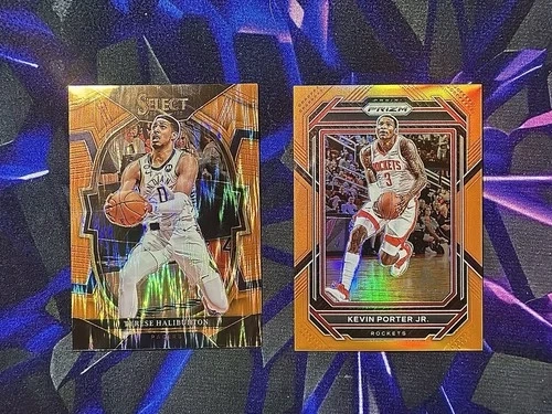 2022-23 Panini Prizm #175 Kevin Porter Jr. Prizms Orange #03/49. Tyrese Haliburton 2022-23 Panini Select Concourse Orange Flash Prizm #20 Pacers. Let me know if you're interested!