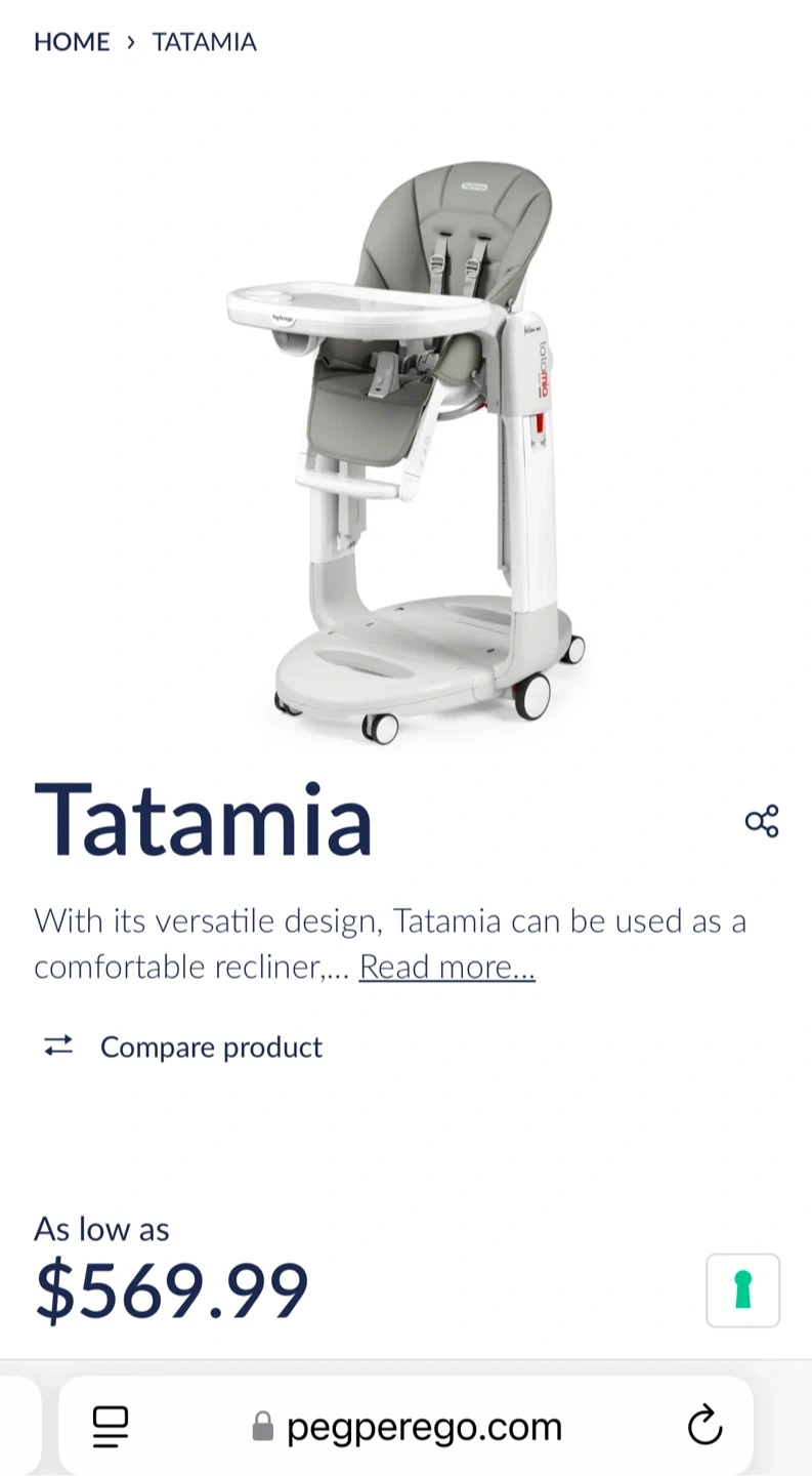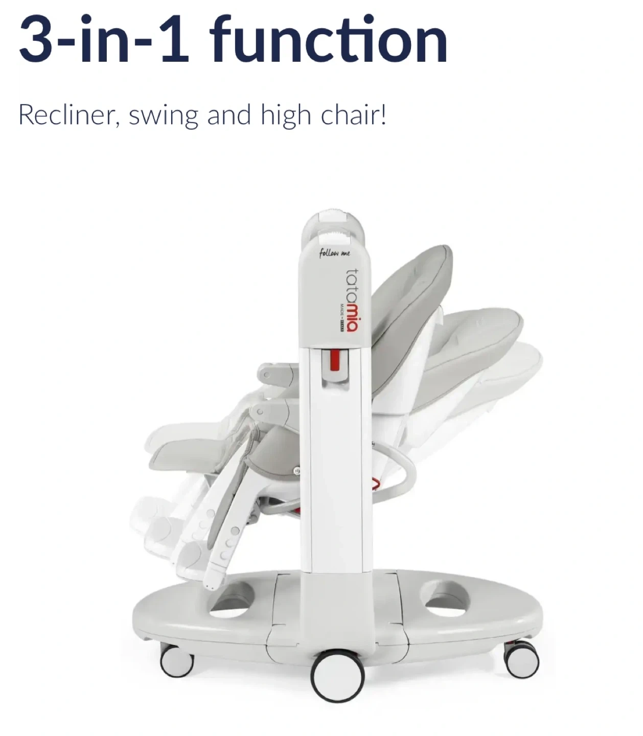 Peg Perego Tatamia is a comfortable recliner, a swing, or a high chair. Used from birth to preschool!